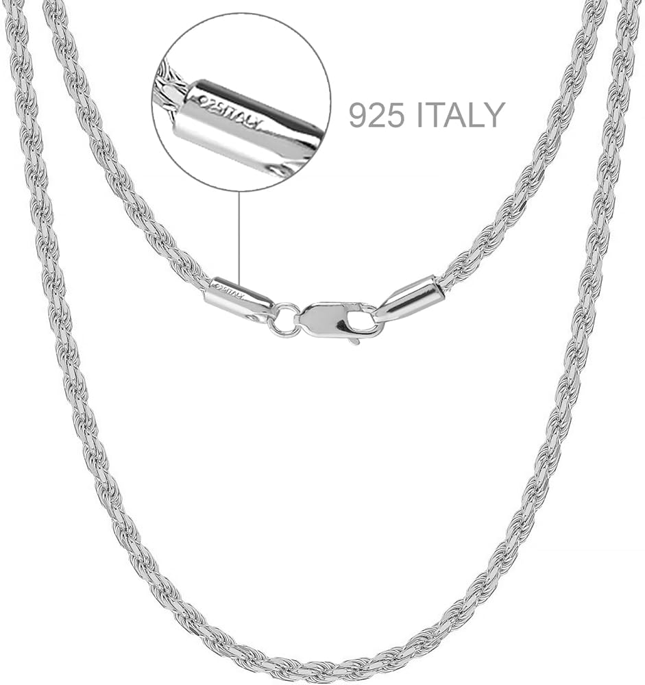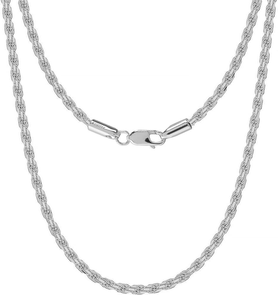 ⚡【معلومات المقاس】الميزة: يمكن ارتداء هذا التصميم الكلاسيكي البسيط لسلسلة الحبال الملتوية المقطوعة بالألماس للرجال والنساء ببساطة للحصول على مظهر أنيق، أو مع قلادات أخرى للحصول على مظهر أنيق ورائع. على عكس المعادن الرخيصة، فإن الفضة الإسترلينية لن تسبب الحساسية لبشرتك. الأبعاد: طول السلسلة 24 بوصة.