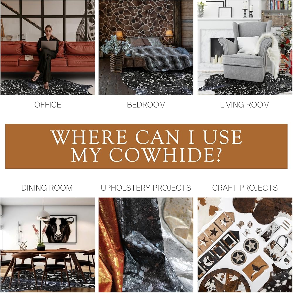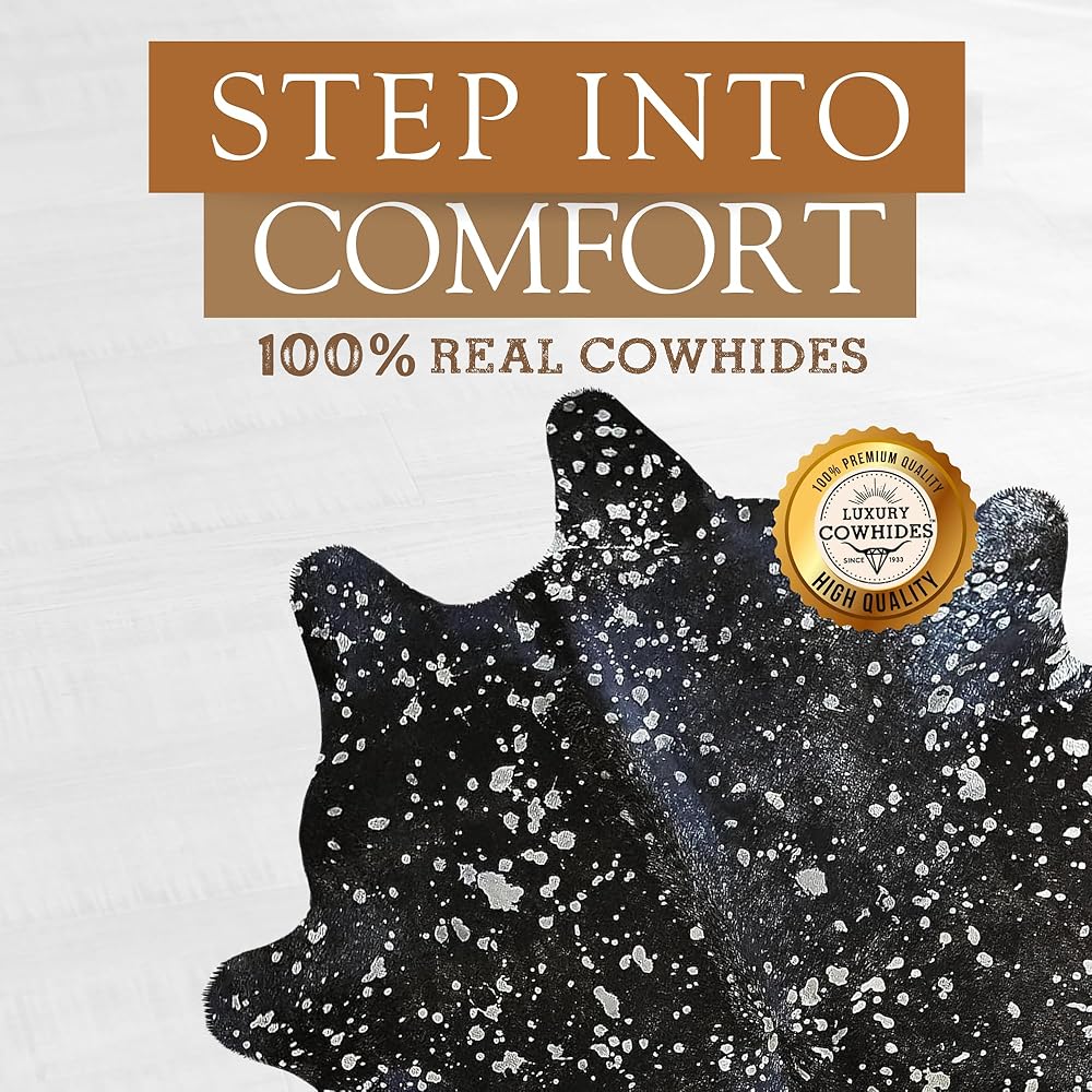 قطعة فنية لكل منزل: احتضن التفرد لكل سجادة من جلد البقر الحقيقي من صن شاين كاوهيد، حيث يختلف حجم ولون كل سجادة بشكل طبيعي بسبب الخصائص الفردية للجلود. توقع وجود اختلافات في الأبعاد وأنماط الألوان، مما يضيف إلى سحر وأصالة جلود البقر الفريدة من نوعها.