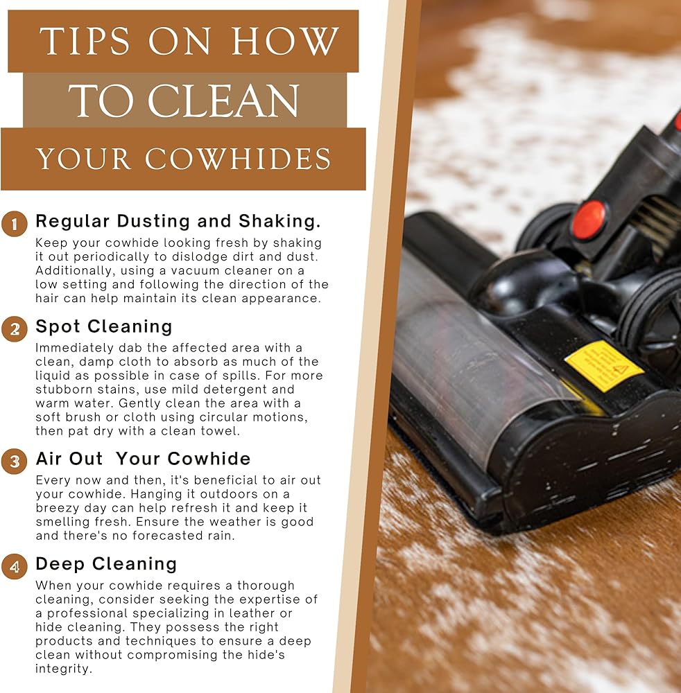 سجادة فاخرة سهلة العناية: السطح الناعم لسجاد البقر الخاص بنا يسمح بسهولة التنظيف، ويتطلب ببساطة مكنسة كهربائية منتظمة أو اهتزاز عرضي لإزالة الغبار والحطام. يمكن تنظيف الانسكابات بسهولة بقطعة قماش مبللة، مما يحافظ على مظهرها الأصلي بأقل جهد. سواء كنت تبحث عن سجاد بقرة لغرفة المعيشة أو سجادة حمام مصنوعة من جلد البقر يسهل صيانتها، فإن منتجنا يلبي احتياجاتك دون عناء مما يجعلها خيارًا عمليًا لديكور غرفة إخفاء البقر لديك.