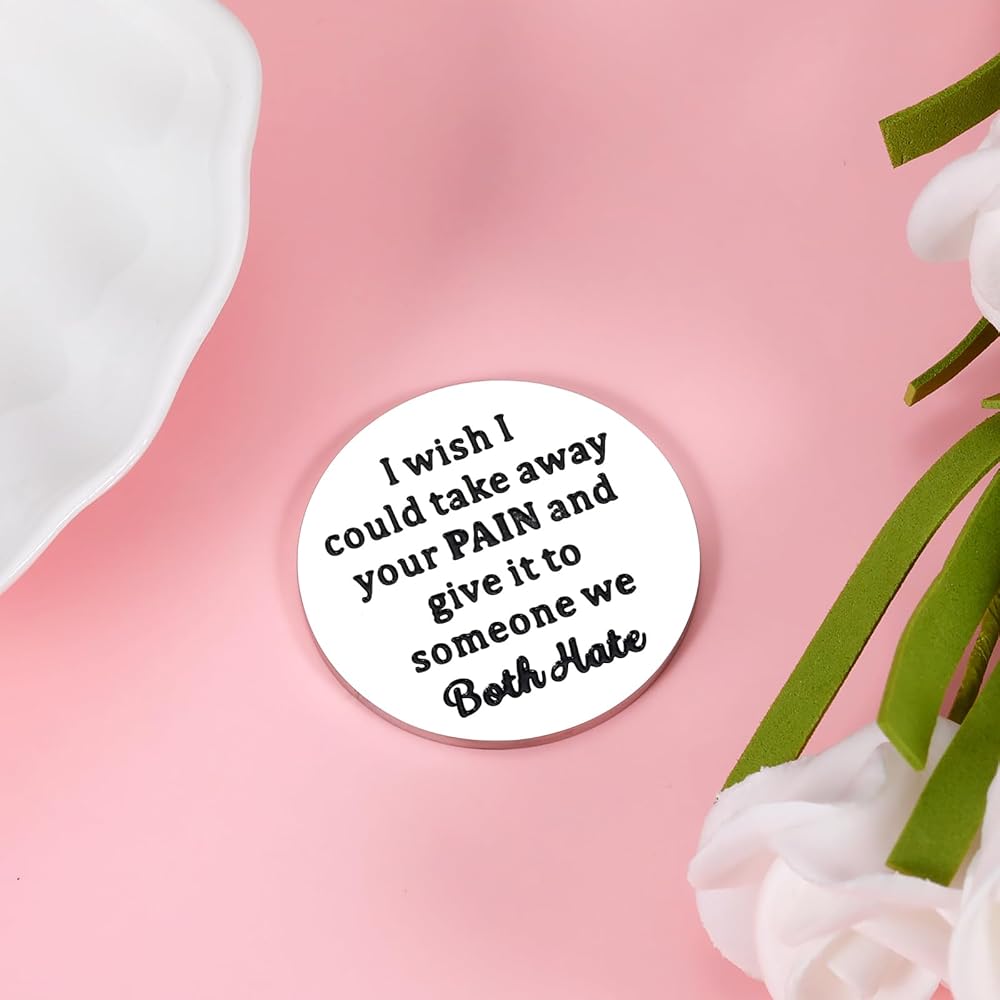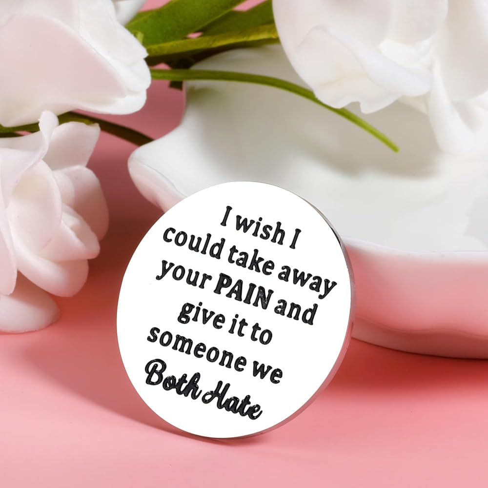 • Get Well Soon Gift: Inspirational words to cheer sad people up. Evoke some laughter with a funny logo” I WISH I COULD TAKE AWAY YOUR PAIN AND GIVE IT TO SOMEONE WE BOTH HATE”. If you have a friend or family member who is going through a bad day of illness, share this gift with her or him, it will brighten up their room in no-time, and remind them that you are thinking of them and praying for a speedy recovery.