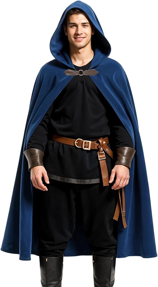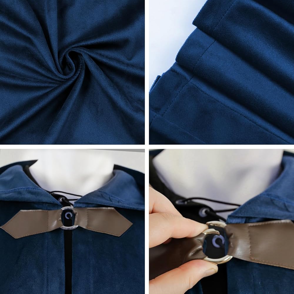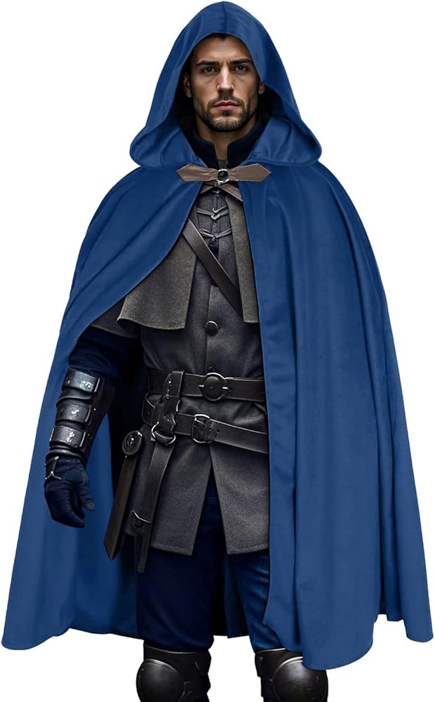 • A Great Gift Idea: Ornament both metal clasps and leather buttons enhancing its medieval charm. This women men hooded cloak is also suitable for daily wear, it's easy to take on and off. Great gift idea for family and friends, Put on this Halloween cloak transforms effortlessly for various costume like steampunk costume,witches cloak costume, victorian costume, wizard costume, lord of king /viking/vampire hobbit costume, king queen cloak cape, medieval cloak costume