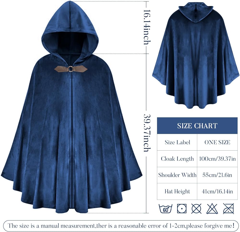 • One Size Fits Most: Unisex design makes it a great easy Halloween costume cloak for men and women. Hooded Cloak length 90cm/35.4in (shoulder from the bottom); Shoulder Width 55cm/21.65in; Hood Hat Height 38cm/15in. Perfect length to cover your hips, which could suitable for most adults of different body types. Viking cloak easy to match with other costume clothes, even you can wear it as a spring, autumn and winter coat for casual outwear