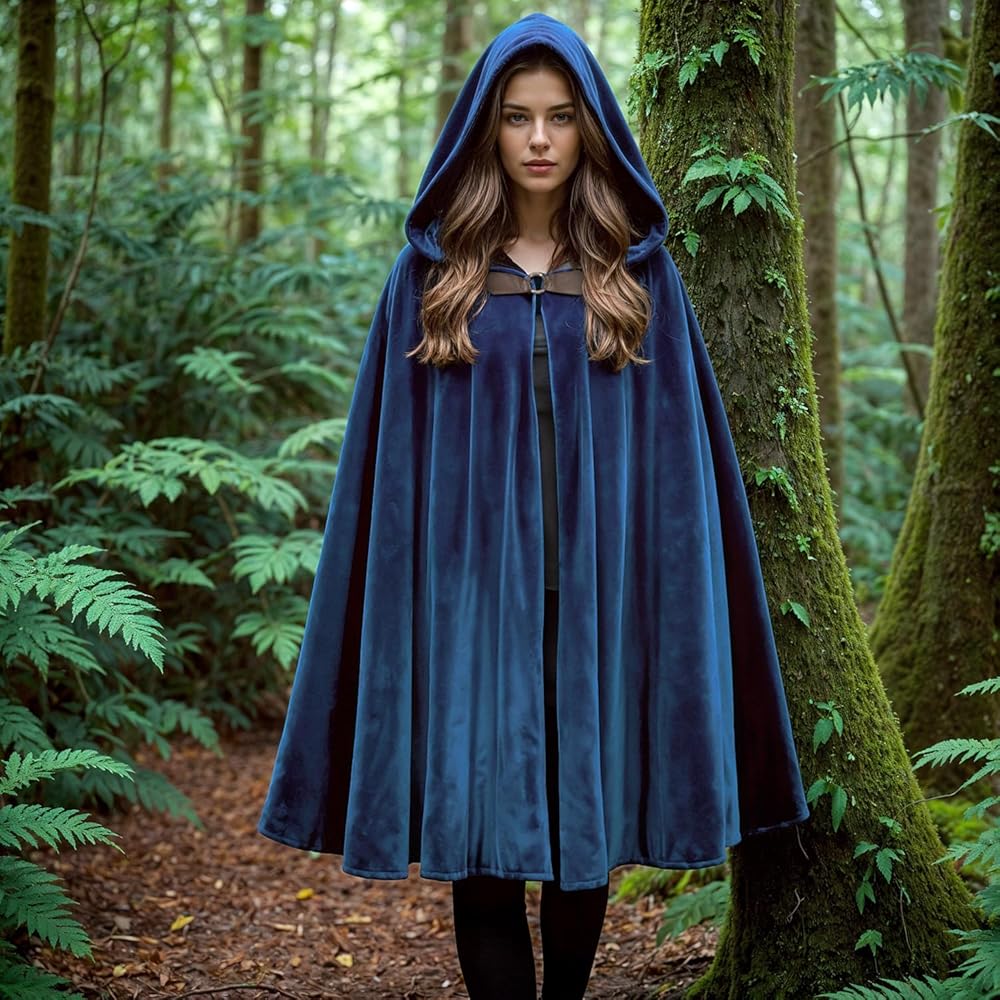 • Velvet Material: Short renaissance cloak available in two colors: black cape cloak and brown hooded cape. Renaissance cloak with hood for men women crafted from 2024 upgrade premium velvet, soft touch, comfortable and warm, anti-wrinkle, anti-pilling, strong drape, fashion hooded poncho great fit to dress up, wizard cloak is comfortable to wear and adds an authentic touch to any outfit