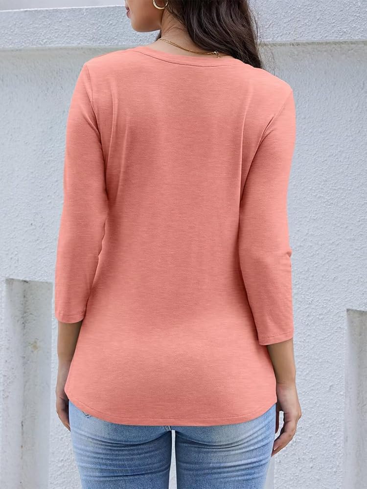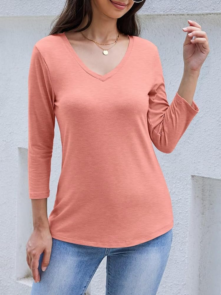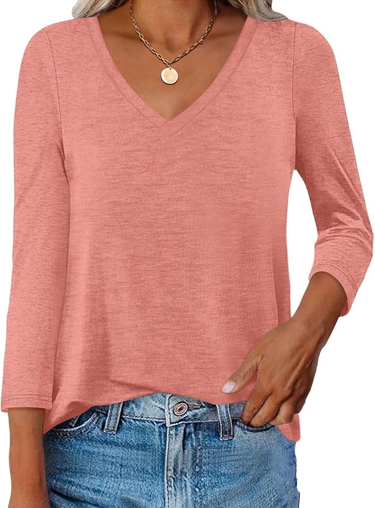 قمصان علوية بأكمام 3/4: قمصان نسائية بأكمام 3/4 طول؛ قمصان علوية برقبة على شكل حرف V وأكمام 3/4 للنساء؛ قمصان برقبة على شكل حرف V للنساء؛ بلايز تنحنح المنحني. قمصان بلايز للنساء؛ قمم الخريف النسائية