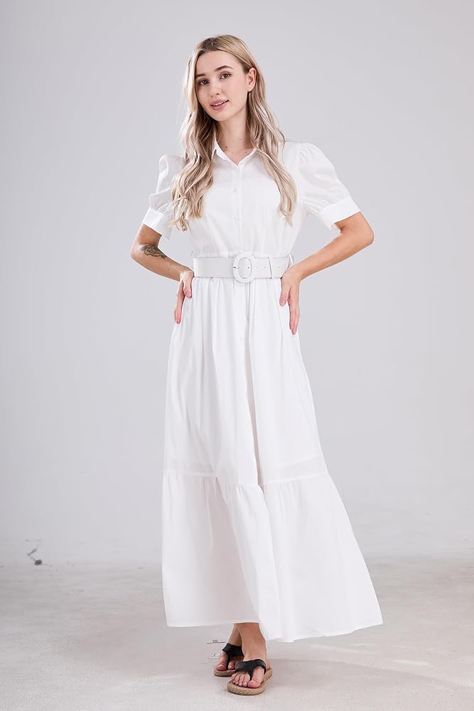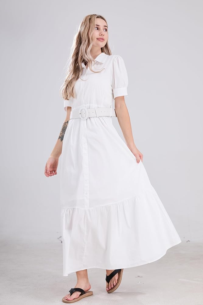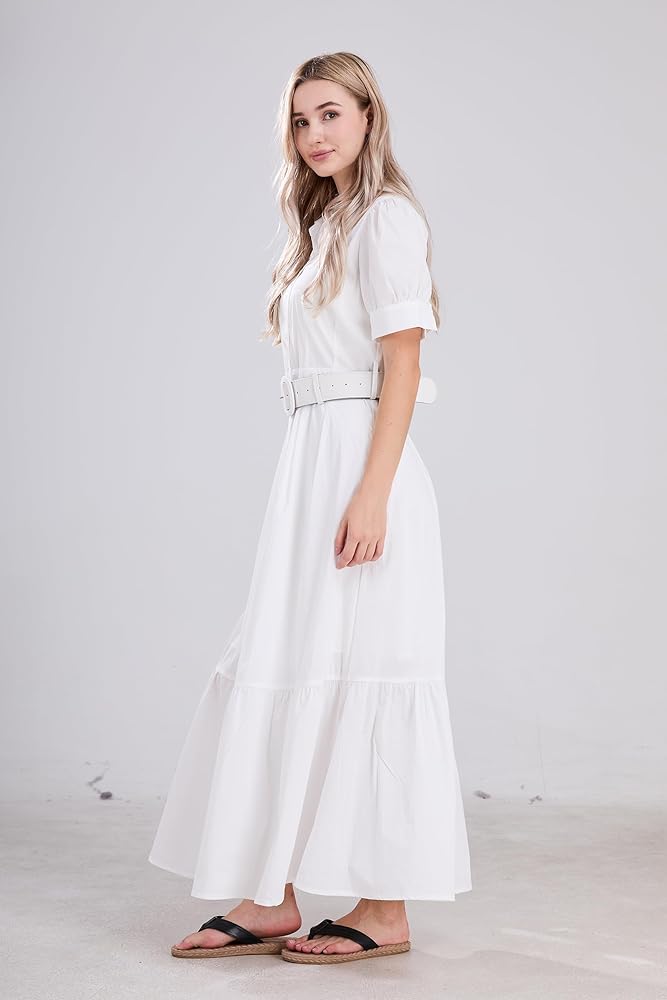 【تصميم أنيق】يتميز هذا الفستان المخطط بأكمام منتفخة وحاشية مكشكشة، مما يجعله أكثر جاذبية وعصرية. يمكن للتصميم ذو الحزام أن يحدد شخصيتك المثالية. هذا الفستان الطويل ذو الأكمام القصيرة مثالي للمرأة التي ترغب في الحفاظ على سحرها طوال الوقت. خيارك الأفضل!