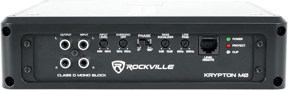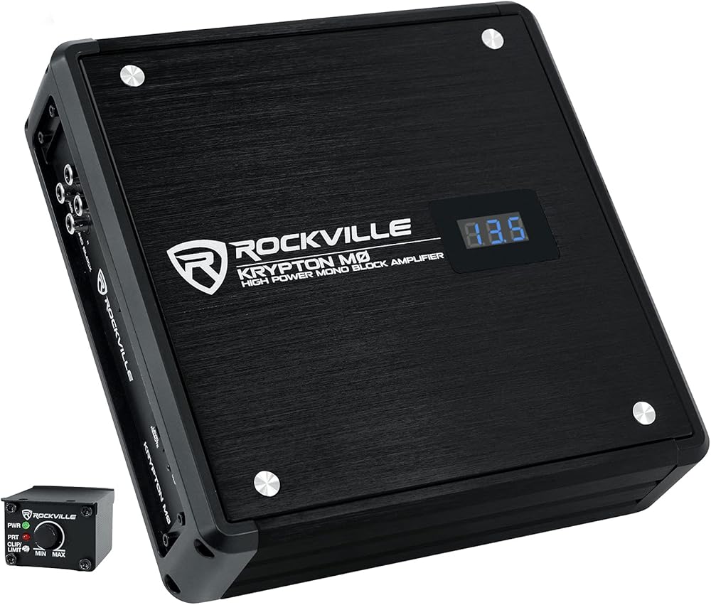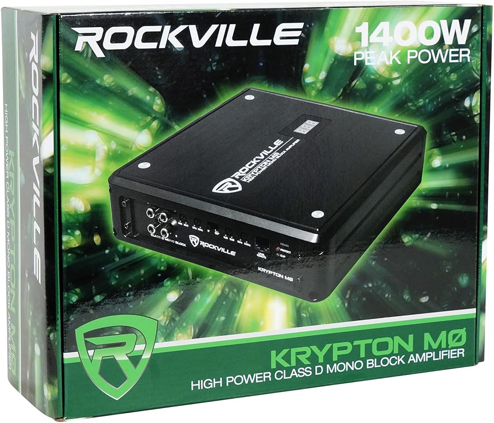 سمات:. . Rockville KRYPTON M3 4000 واط الذروة و1000 واط RMS فئة D 1 أوم مضخم أحادي ثابت مع عرض الجهد. تقييمات طاقة RMS المعتمدة من Dyno: (اختبار Dyno المعتمد / أقل من 1% THD) (استخدم هذه التصنيفات عند المقارنة مع أفضل العلامات التجارية مثل Kicker وRockford Fosgate وما إلى ذلك).