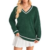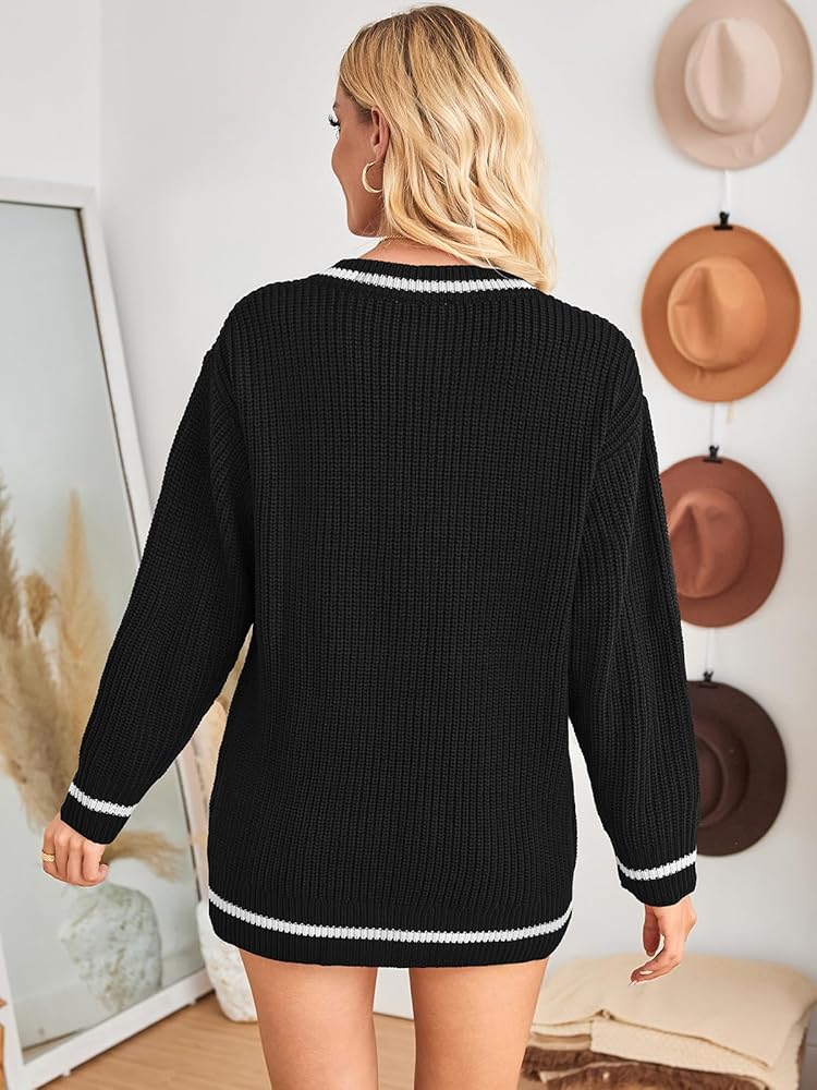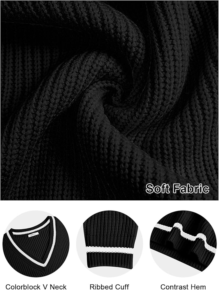 المزايا: سترات بلوفر للسيدات، كم طويل، رقبة على شكل حرف V، تصميم بألوان متباينة، أساور مضلعة ملونة، طراز كبير الحجم، طول التونيك، ملابس محبوكة كلاسيكية ولكن أنيقة تناسب أي شخصية