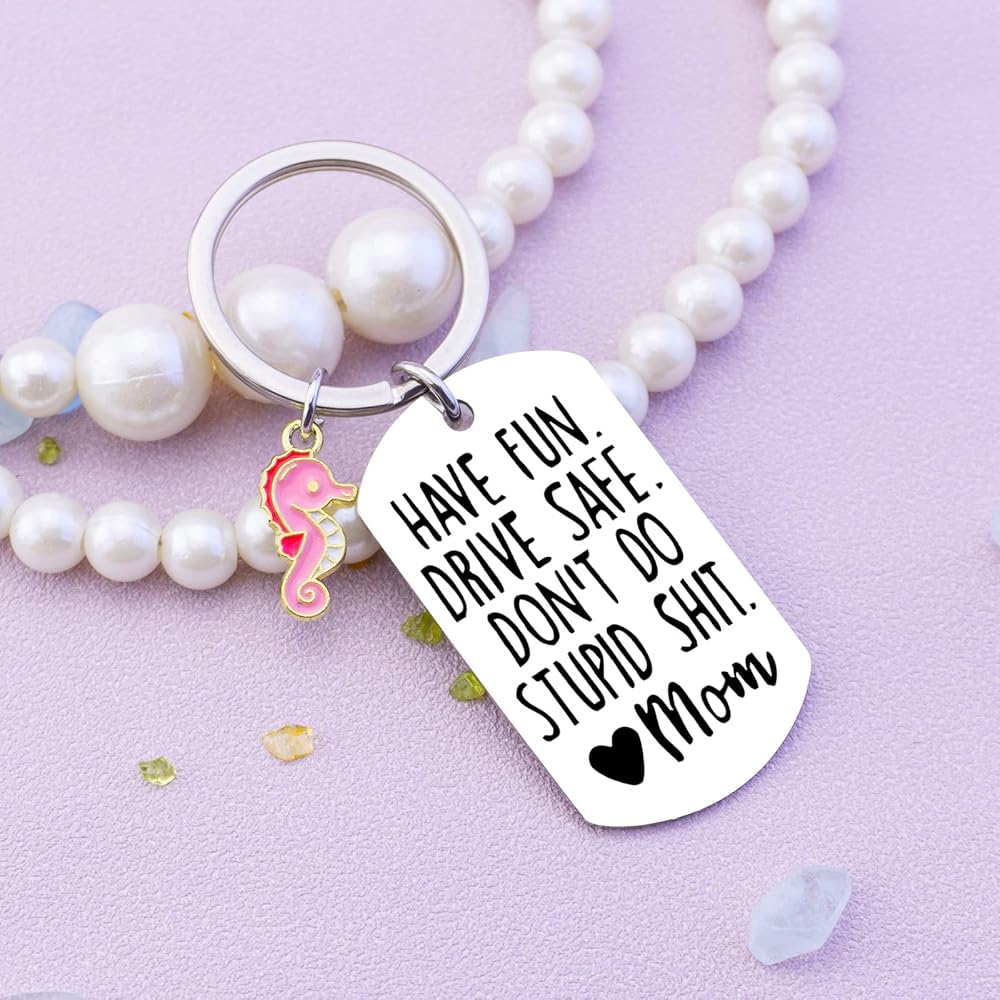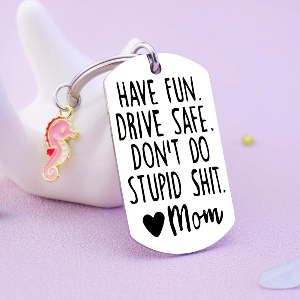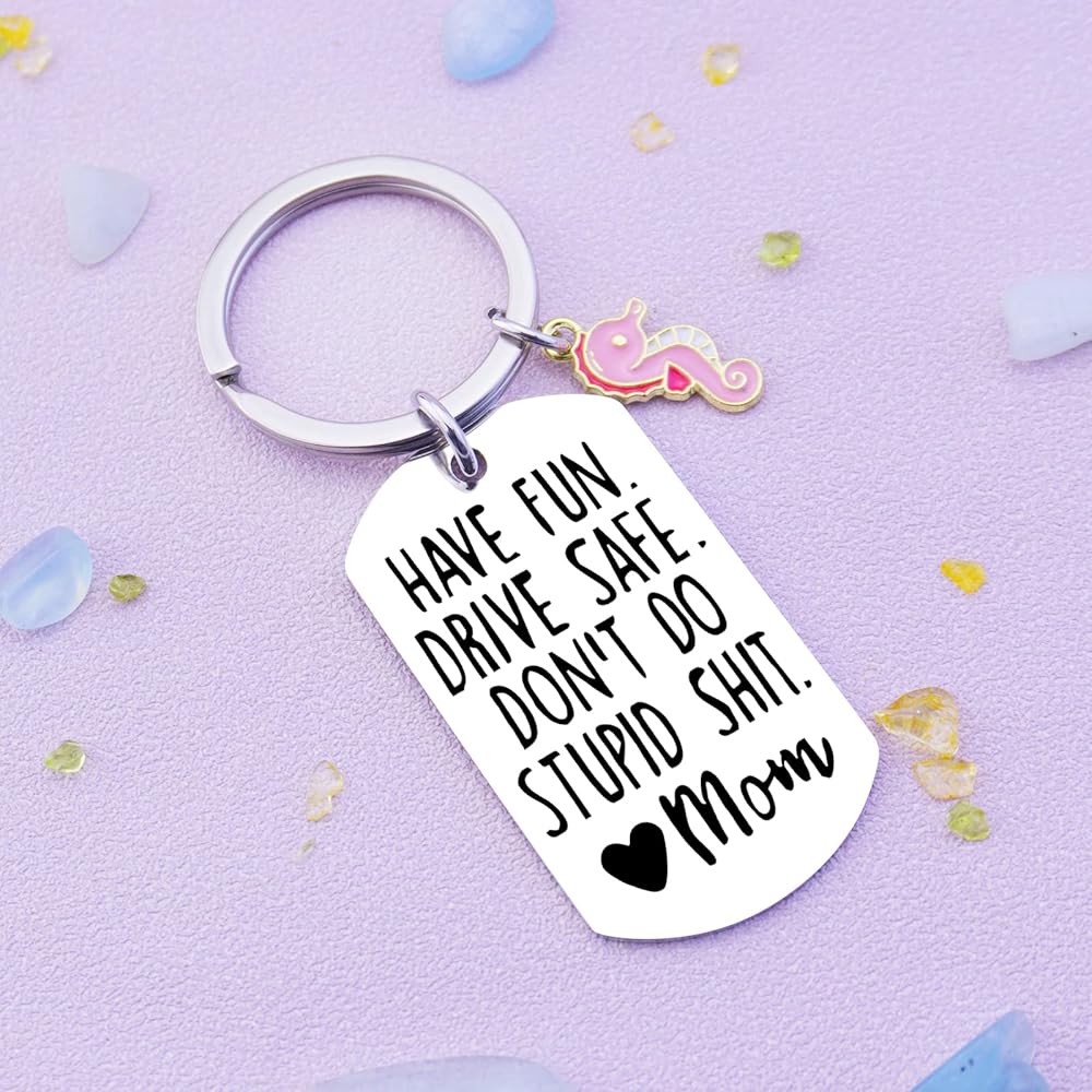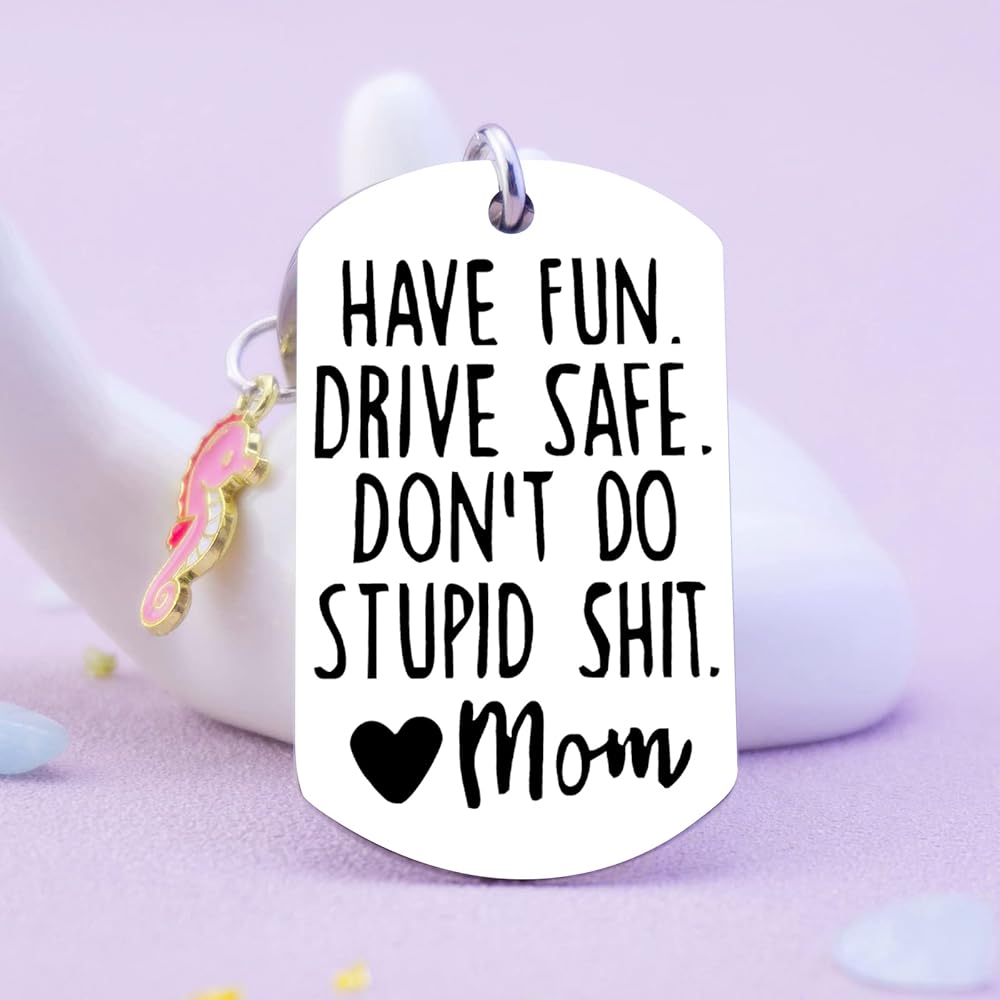 هدايا ممتعة وذات مغزى - حلقة المفاتيح المضحكة هذه منقوشة برسالة فكاهية "Don't Do Stupid Shit" من الأم والأب. هدايا صغيرة ذات معنى لتذكير أطفالك بها