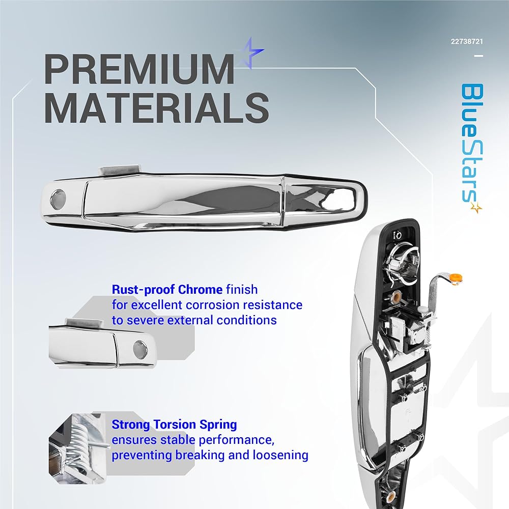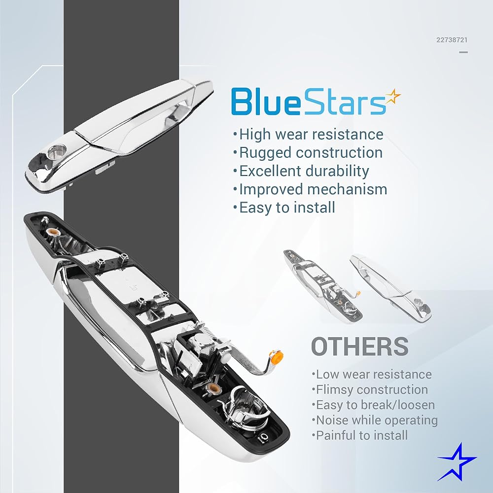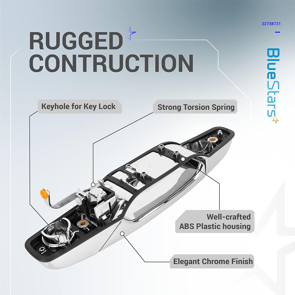 مقبض الباب BlueStars 22738721 يسمح للسائقين بفتح الباب بشكل مريح مع سهولة السحب وقفل أو فتح الباب بشكل آمن. بعض الأعراض الشائعة التي يجب فحصها واستبدال مقبض الباب القديم: مقبض مكسور/مشقق/صدئ/مؤكسد/مفكوك | خلل في آلية القفل | من السهل أن تتعثر/تتكدس، وما إلى ذلك.
