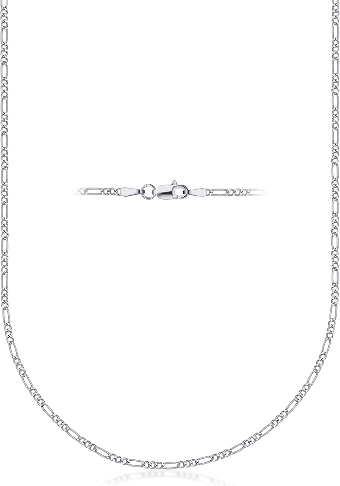 * PORI Jeweler creates intricate quality pieces with complex crafting skills that will stand out in your collection. * Elegant & Beautiful Solid 925 Sterling Silver Piece of Jewelry. Add a touch of timeless refinement with this strong and beautiful Sterling Silver figaro Chain Necklace. This sleek and simple Italian made Sterling Silver Figaro Chain can be worn alone or with a pendant. Comes in Size 16-30 Inches. Look Good and Feel Good with this beautiful Figaro chain. This Classic Figaro Chain design is timeless and sure to catch anyone's attention. Add this necklace to any outfit to create a stylish ensemble. Perfect for any occasion, be it casual or fancy. Makes a great gift for a loved one! Our sterling silver chains are stamped .925 to ensure its authenticity. Lobster lock Clasp will keep your chain securely fastened. Made In Italy, this chain is of a higher quality than most others. Our sterling silver chains are tarnish resistant and stand the test of time. Customer satisfaction is our priority. We guarantee the best possible quality.