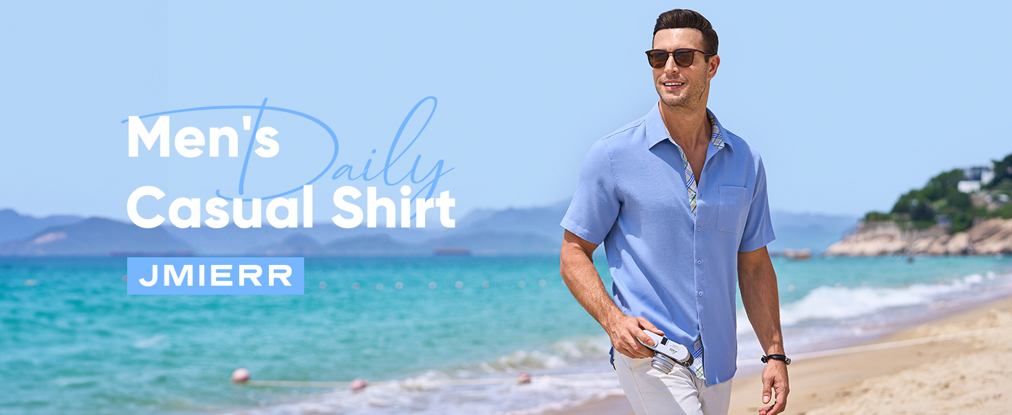 قمصان JMIERR للرجال بأكمام قصيرة صيفية بأزرار سفلية كاجوال للشاطئ هاواي مع جيب in Kuwait