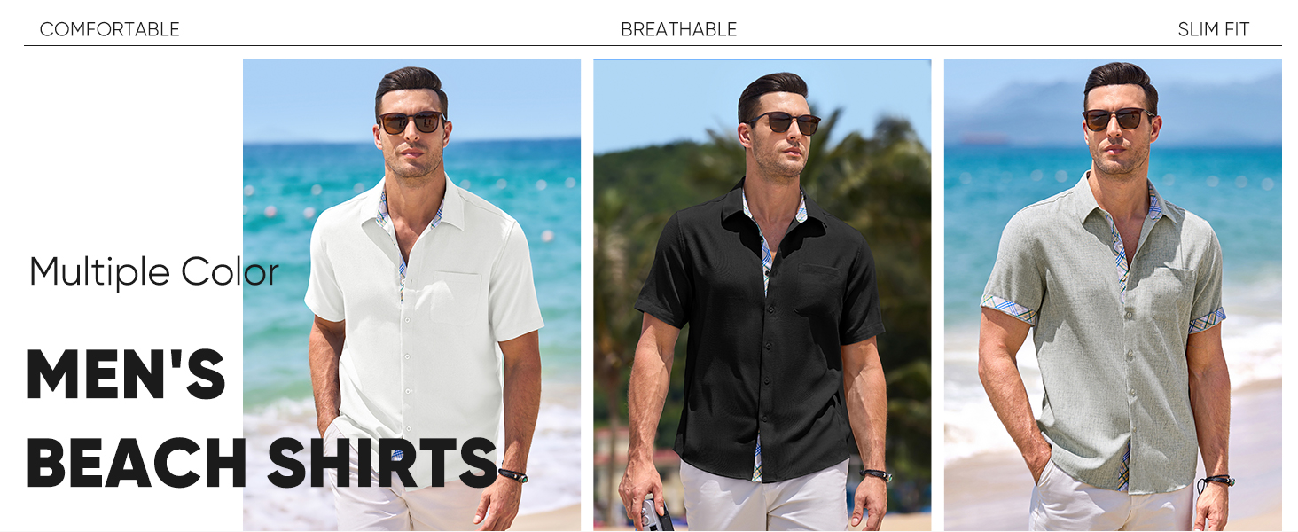 • المزايا: قمصان رجالي من القطن والكتان تتميز بنمط منقوش، وجيب أمامي، وتصميم بأزرار سفلية، وأكمام قصيرة، ومقاس عادي. تصميم كاجوال على طراز عطلة الشاطئ ليجعلك تشعر بتحسن في هذا الصيف.