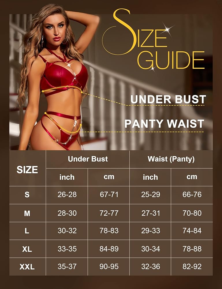 سلسلة عصرية وفريدة من نوعها: تضيف السلاسل المتلألئة لمسة من السحر وترفع من مظهرك، مما يجعلك تشعرين وكأنك أيقونة الموضة الحقيقية. تميزي عن الآخرين واحتضني شخصيتك الفردية مع مجموعة الملابس الداخلية الرائعة هذه.