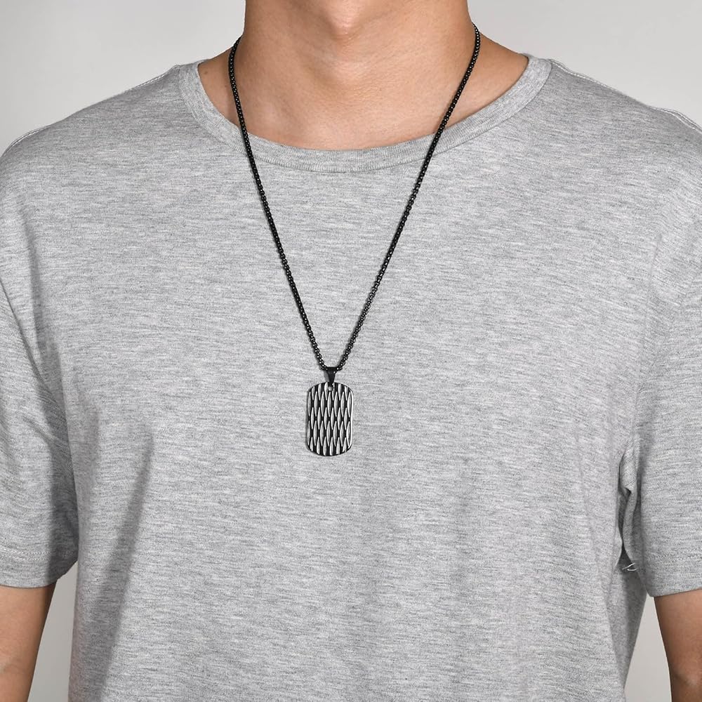 قلادة علامة الكلب الهندسية المصنوعة من الفولاذ المقاوم للصدأ للرجال، قلادة علامة الكلب باللونين الأسود والفضي للرجال، سلسلة رولو 24 بوصة مجوهرات أنيقة