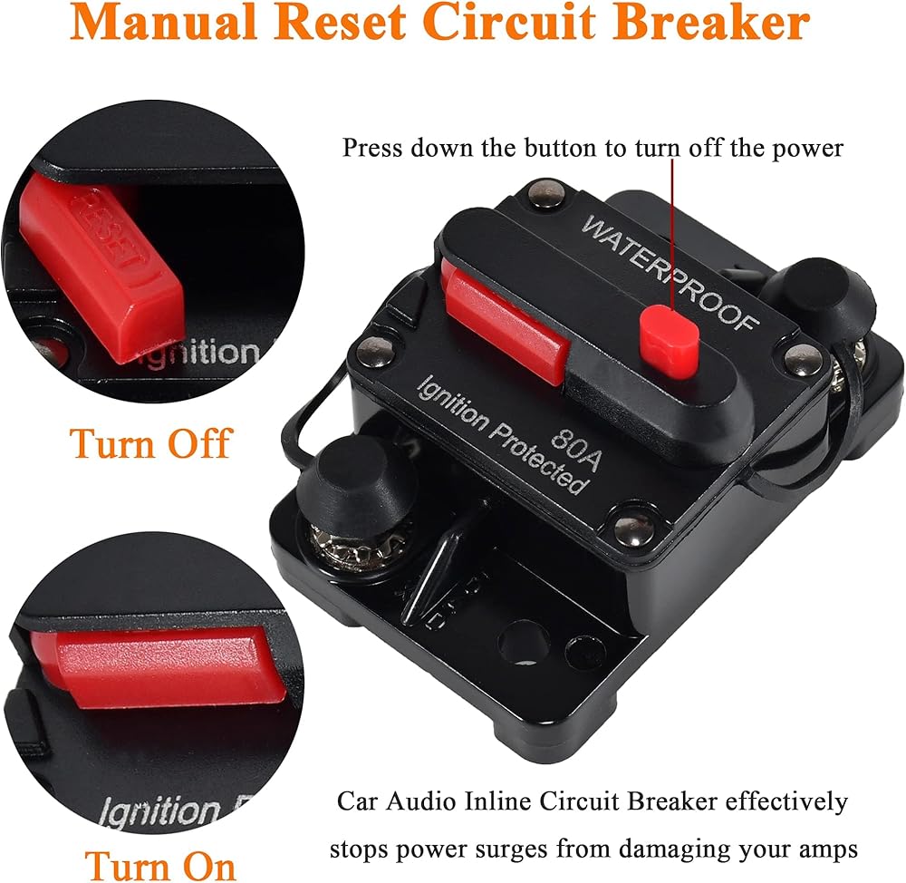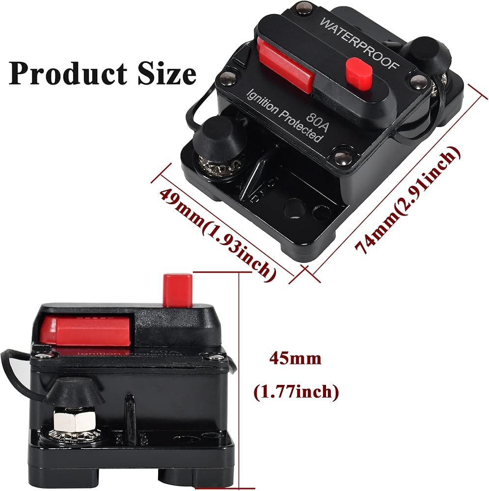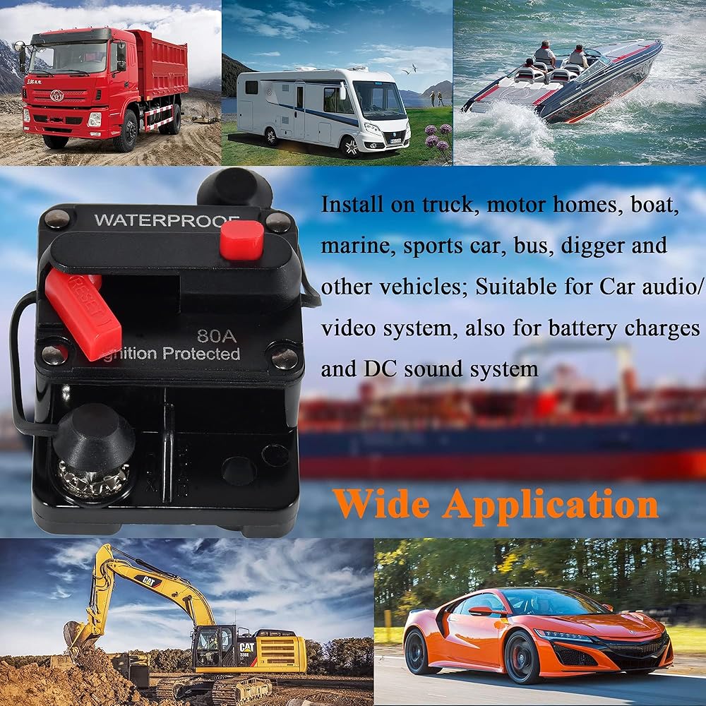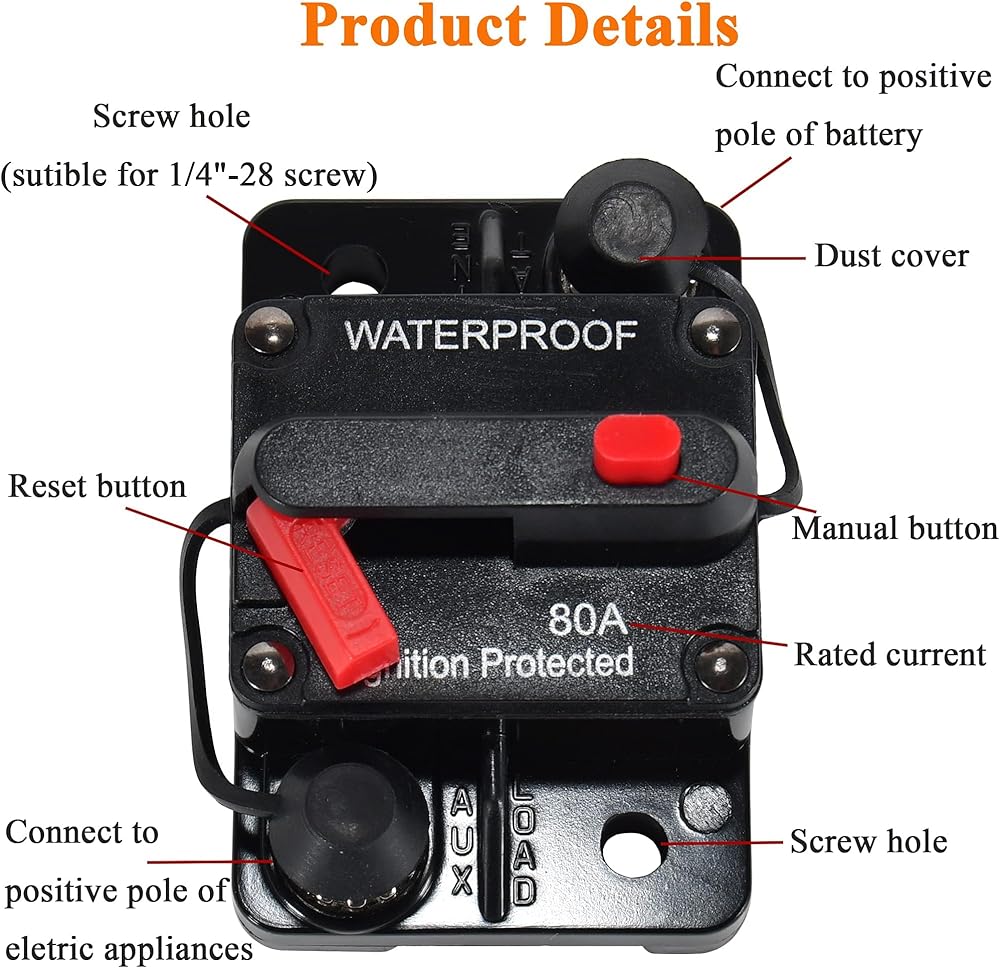 قاطع الدائرة البحرية: يعمل قاطع الدائرة الصوتية للسيارة بقوة 80 أمبير على إيقاف ارتفاع الطاقة بشكل فعال من إتلاف الأمبير، ويحمي محرك التصيد الخاص بك من التلف الكهربائي، ويحل مشكلة الدائرة القصيرة