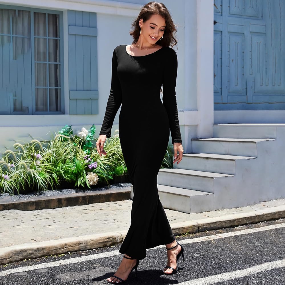 • تصميم كلاسيكي وبسيط - يتميز هذا الفستان النسائي طويل الأكمام برقبة واسعة بسيطة تتسع عند الحاشية، مما يخلق صورة ظلية جذابة على شكل حورية البحر تعزز شكل الساعة الرملية. إنه مريح ومريح للارتداء طوال اليوم، مع المقاس المناسب لسهولة الحركة