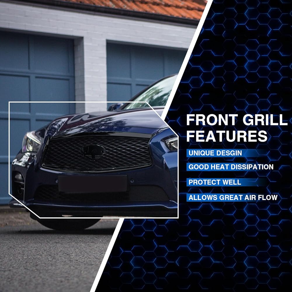 • شبكة المصد الأمامي العلوية مناسبة لإنفينيتي Q50 2014 2015 2016 2017.
