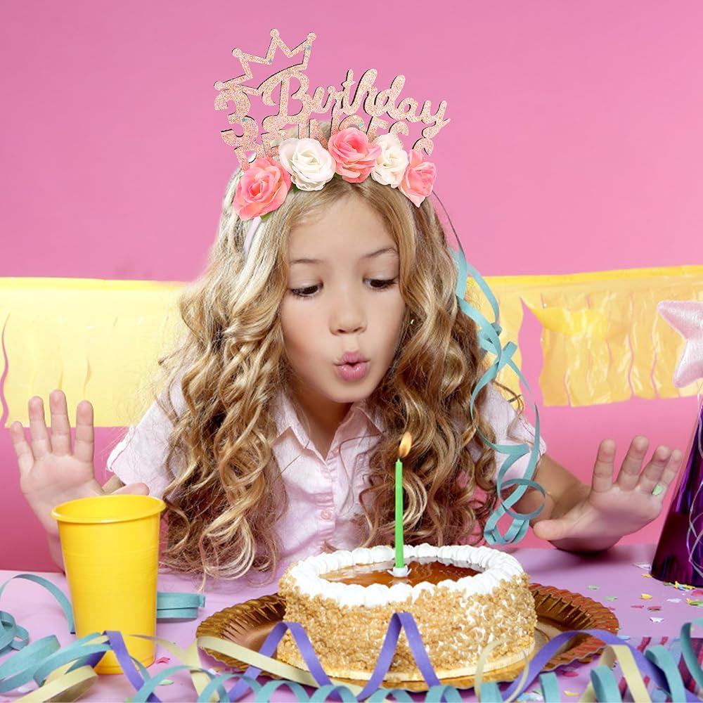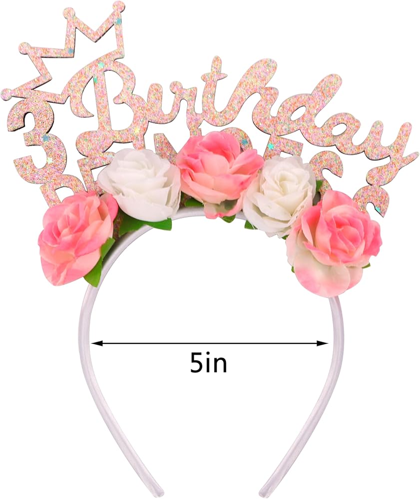 Made of flexible metal, 5.5 inch Length and adjustable width, birthday tiara fit for most head size. Weight is 1.4 OZ.