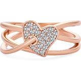 Express your love with this stunning two-tone ring. Features a shimmering, open heart CZ centerpiece on a curved sterling silver band. Rose gold-plated accent interweaves through the heart. Perfect for Valentine's Day, Mother's Day, anniversaries, or as a promise ring.