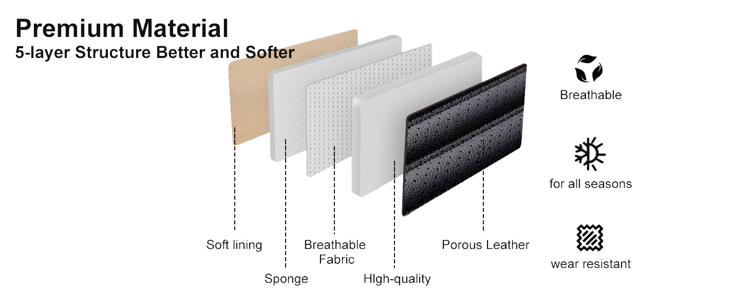 [مريح]: مصنوع من جلد صناعي عالي الجودة، مسامي وناعم، تجربة مريحة للسائقين والركاب.