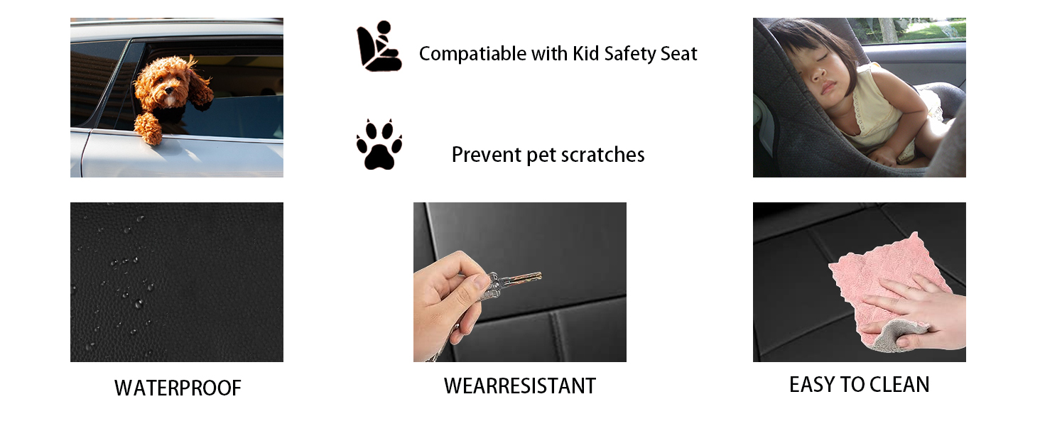 [سهلة التنظيف]: يمكن تنظيف واقيات المقاعد المقاومة للماء بسهولة بقطعة قماش مبللة، وهي مثالية لأولئك الذين لا يريدون قضاء الكثير من الوقت وما زالوا يريدون الحفاظ على نظافة سيارتهم.