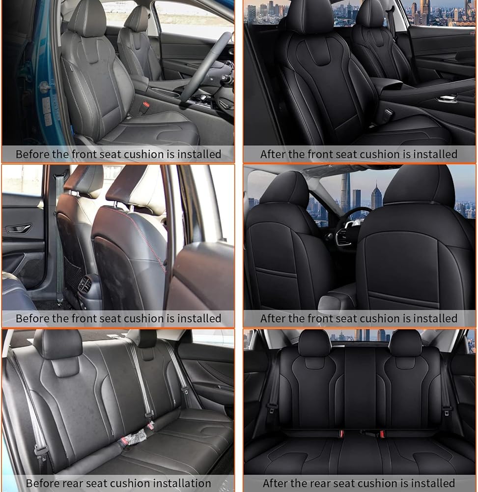 أغطية مقاعد مخصصة من AOMSAZTO لشركة Hyundai Elantra: 2021 2022 2023 2024 SE SEL 2021-2023 أغطية مقاعد السيارة من الجلد الأزرق الهجين مجموعة كاملة باللون الأسود