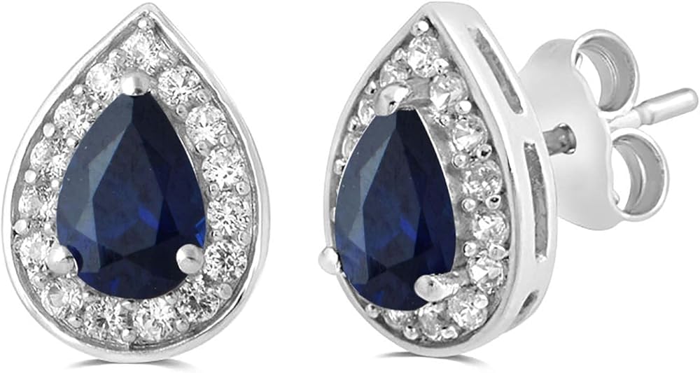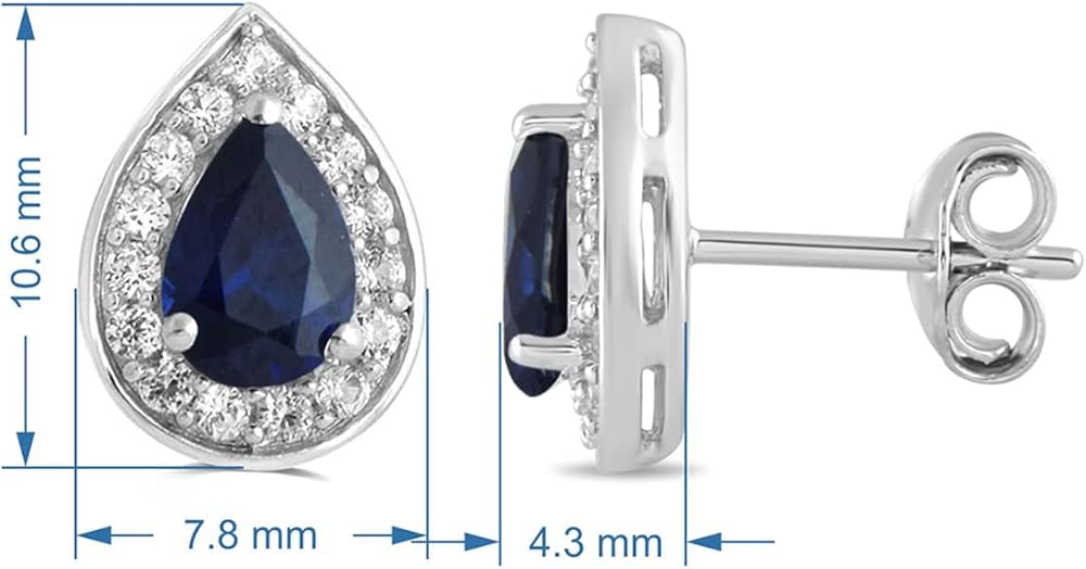 أقراط Jewelili من الفضة الإسترليني والكمثرى من الياقوت الأزرق والياقوت الأبيض المستدير