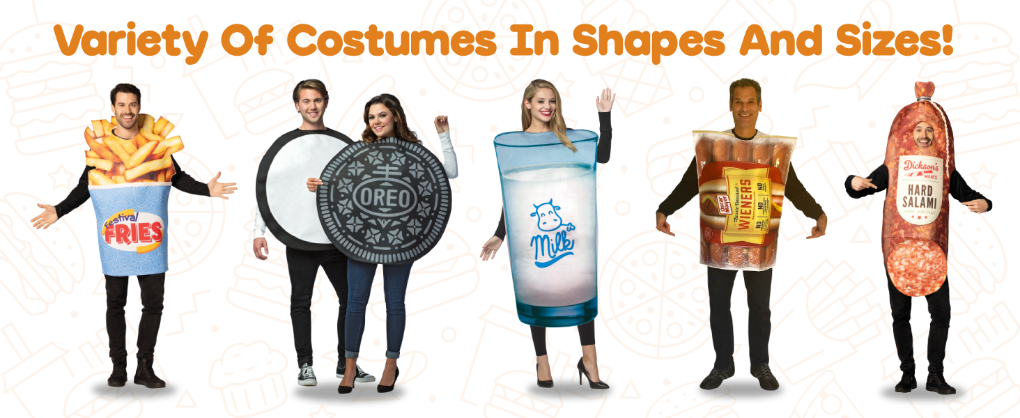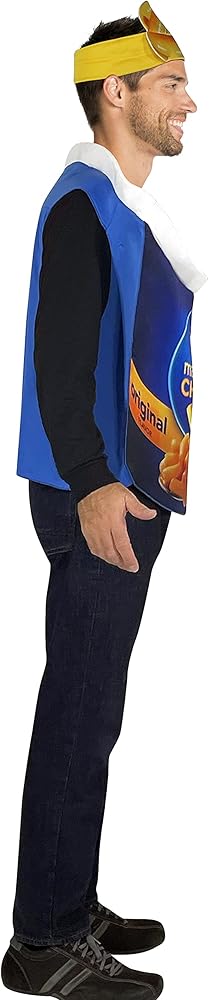 • INCLUDES: The costume includes a tunic and a headband. The tunic has photo realistic printing in the likeness of the actual product. 3D macaroni pieces are attached to the tunic.