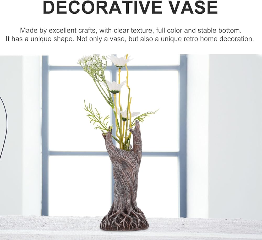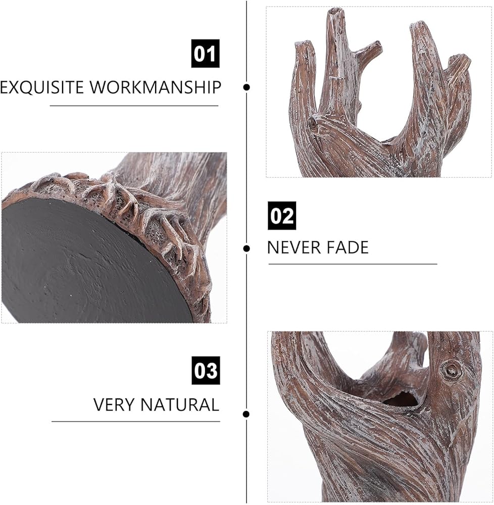 • ديكور متعدد الاستخدامات: مزهرية جذع شجرة الراتنج هذه ليست مجرد مزهرية؛ إنها جوهرة زخرفية متعددة الأوجه. يمكن أن تقوم بأدوار مختلفة في ديكور منزلك. يمكن أن تكون قطعة مميزة في غرفة المعيشة الخاصة بك، وتضيف لمسة من النزوة إلى المساحة البسيطة، أو يمكن أن تمتزج بانسجام مع الديكور الطبيعي في غرفة نومك، مثل الكنز المخفي الذي ينتظر اكتشافه.