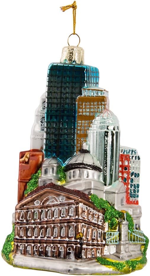 The Kurt Adler 5-Inch Glass Boston Cityscape Ornament is a great way to honor the city of Boston. It features many iconic Boston symbols and landmarks.