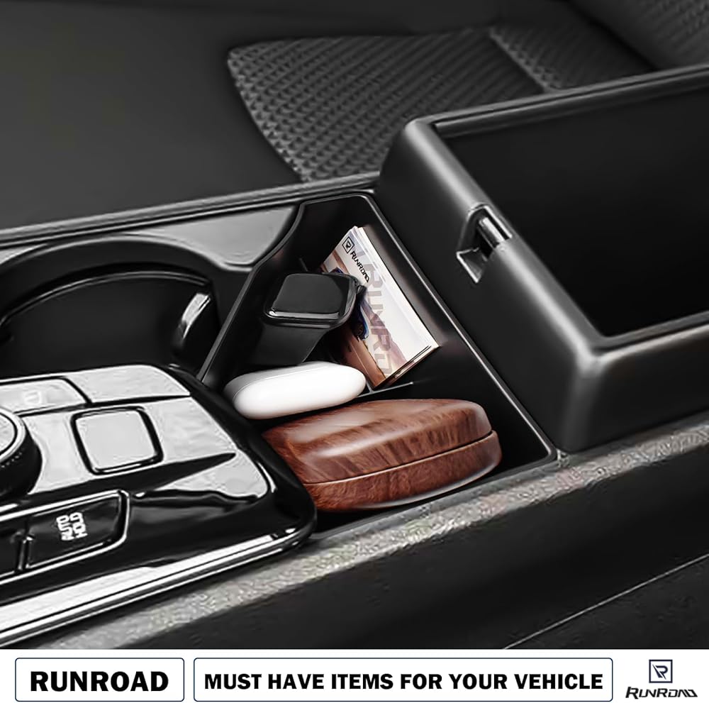 متين في الاستخدام - تم تصميم منظم مسند الذراع RUNROAD للتركيب بسهولة دون الحاجة إلى أي تعديلات. مصنوعة من مواد ABS سوداء، متينة وعملية.