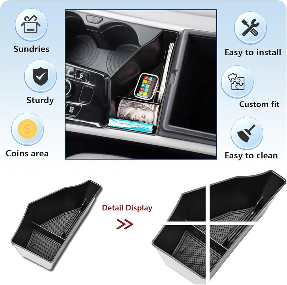 منقذ الفرز - منظم مسند الذراع الرائع للاستفادة من المساحة المهدرة. يحافظ أيضًا على إمكانية الوصول إلى العناصر الصغيرة بدلاً من سقوطها في الجزء السفلي من منطقة التخزين حيث يتعين عليك البحث لمدة 10 دقائق للعثور عليها.