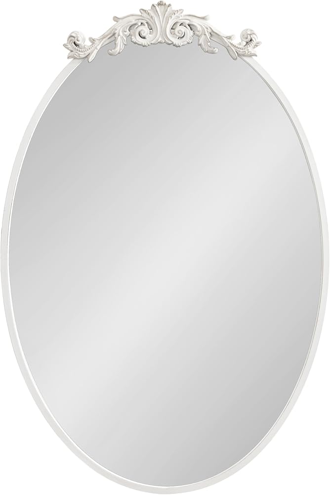 The Arendahl wall mirror brings a brilliant and decadent accent to any traditional home design. This wall mirror features a baroque-inspired design, with a resin garland crown cascading down an iron oval frame. The antique white finish brings it together as a vintage piece to display anywhere in your coastal home seeking additional light and elegance. Due to its hand-finished craftsmanship, each piece may vary in appearance. Showcase it in your living room, bedroom, entryway, bathroom vanity, or dining room for an elegant, conversation-starting focal point. Use the fabulous Arendahl wall mirror to bring dimension to your smaller spaces, opening up the area, and illuminating the darker corners. Proudly exhibit the Arendahl mirror on its own or in multiples, measuring 24 inches wide by 36 inches tall, providing enough space to create a fantastic wall accent. This framed mirror is also easy to hang, with a metal sawtooth wall hanger discreetly and securely attached to the back. There's no better way to bring an elegant, classic design aesthetic to your home than with this beautiful accent mirror. It'll dazzle your guests and create a permanent statement piece for your living space.