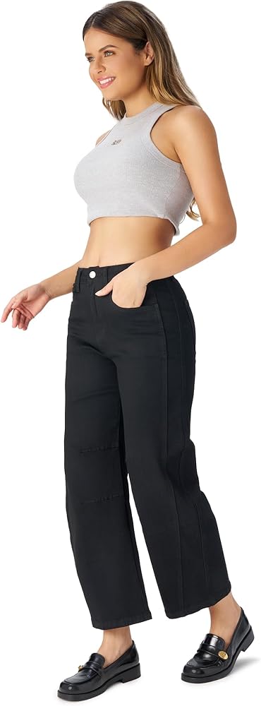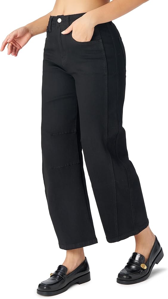 تم تصميم هذا الجينز ذو الساق الواسعة بخصر عالٍ، ويوفر مظهرًا جذابًا ومتطورًا، مما يعزز محيط خصرك