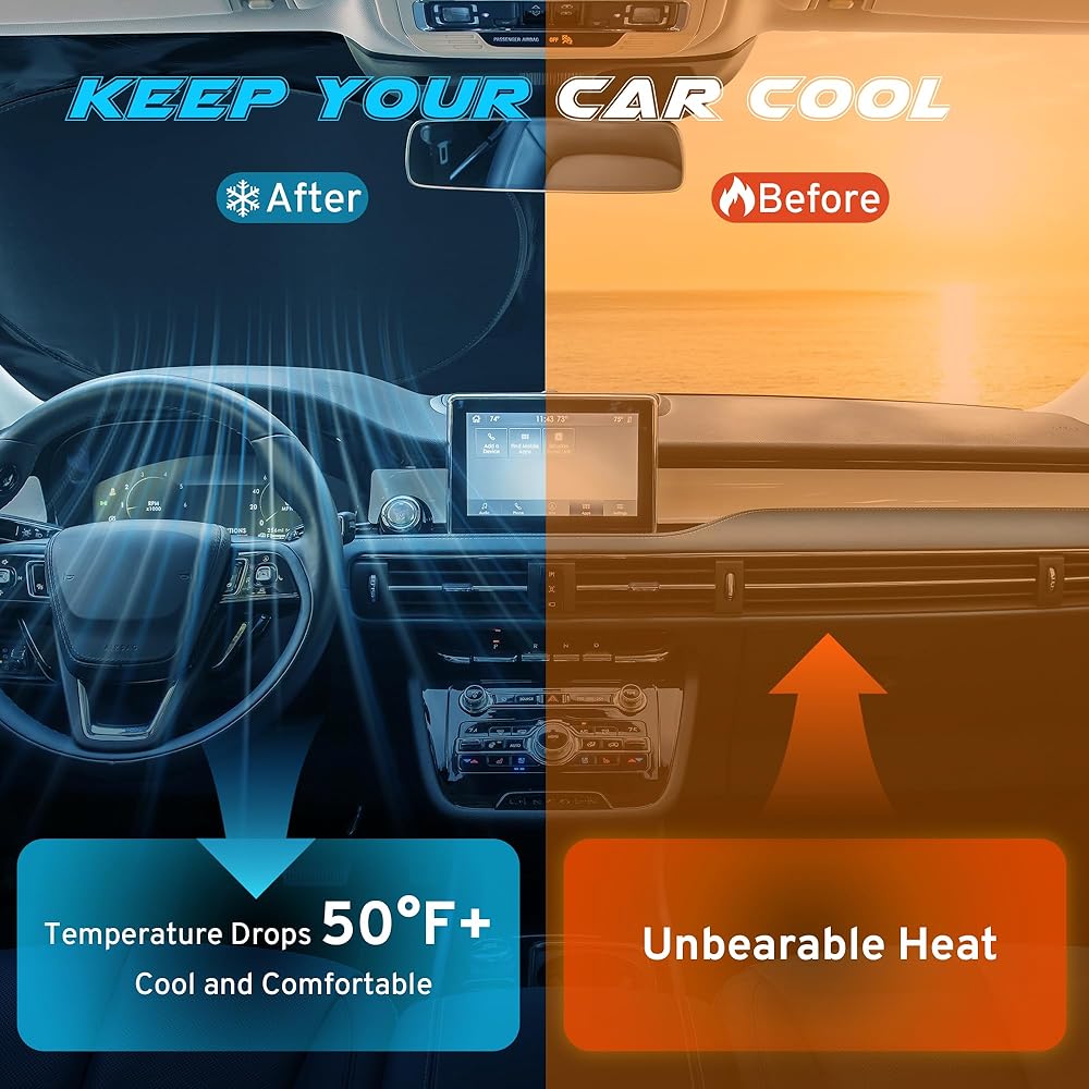 【تصميم خاص لكيا】: تم تصميم مظلة الشمس للزجاج الأمامي خصيصًا لكيا، وتتميز بحلقات فولاذية معززة لملاءمة دقيقة وآمنة لا تتطلب أكواب شفط. على عكس دروع حرارة السيارة الأخرى، فإنه لن يتدلى أو ينهار، مما يضمن أنه مناسب تمامًا لكيا K5 (2021-2024 2025) سيلتوس (2020-2024 2025) فورتي (2019-2024) سول (2010-2024) ستينغر ( 2018-2024).