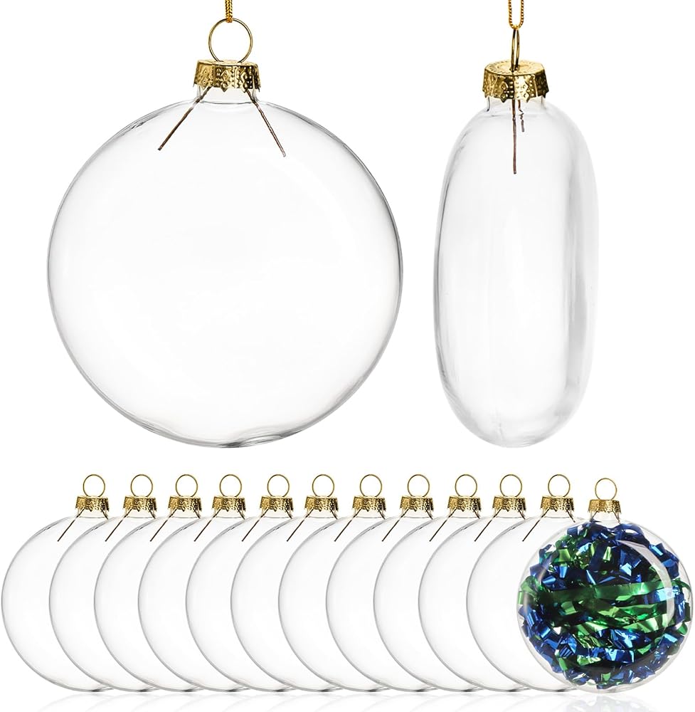 12 قطعة من زخارف عيد الميلاد المسطحة قابلة للتعبئة، لمبة زجاجية شفافة مقاس 3.2 بوصة لزينة عيد الميلاد المعلقة قابلة للإزالة، مصابيح كروية بيضاوية شفافة DIY لتزيين شجرة الحرف اليدوية