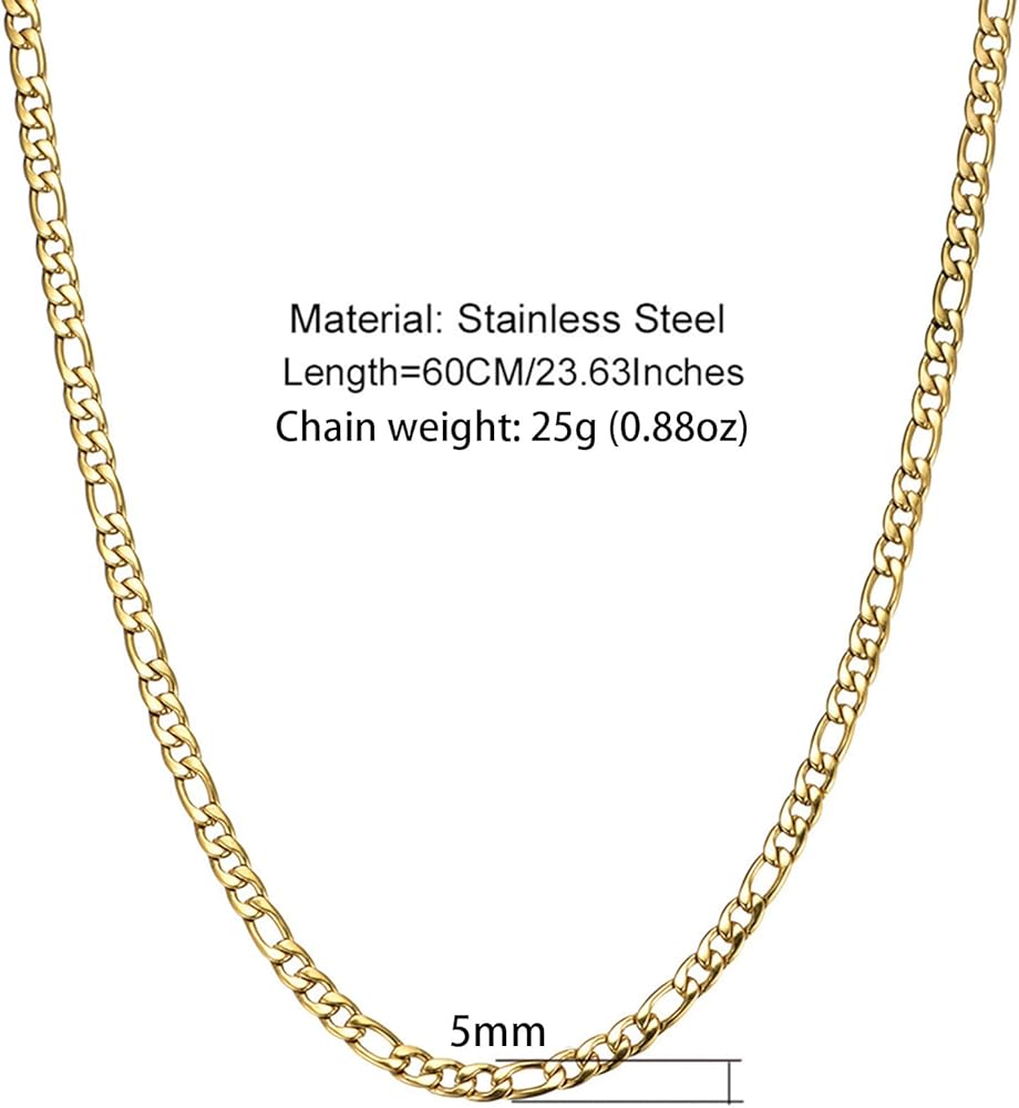 حجم المنتج: تتضمن المجموعة 1 قلادة، 1 سلسلة فيجارو، طول السلسلة: 23.63 بوصة (0.2 بوصة عرض)، قلادة 3.34 بوصة طول (0.98 بوصة عرض)، مناسبة لمعظم الأشخاص.