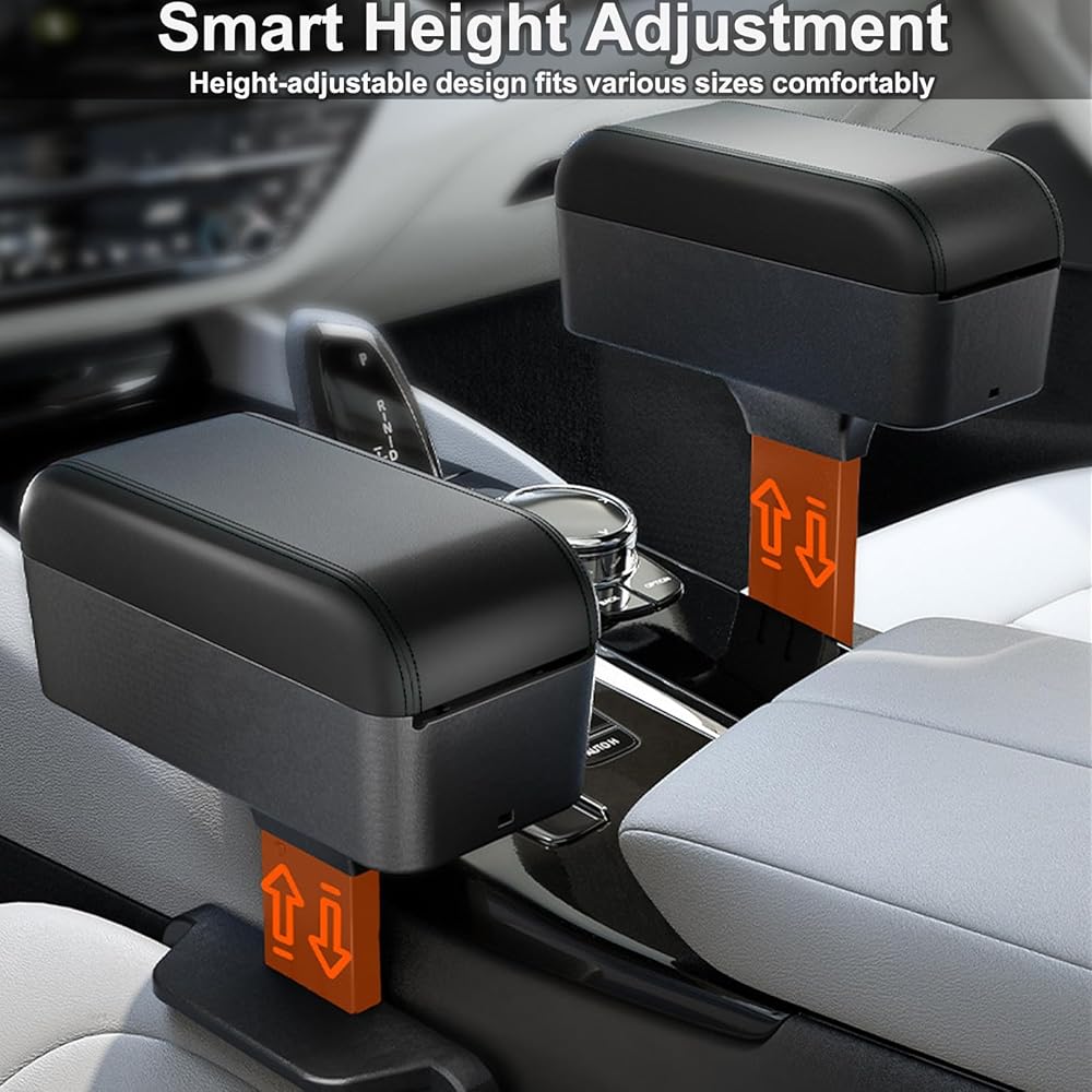 【مسند ذراع السيارة قابل للتعديل لراحة القيادة】تم تصميم صندوق مسند ذراع السيارة الخاص بنا خصيصًا لتوفير الراحة الشخصية. يسمح لك زر تعديل المسار والارتفاع التلسكوبي المحدث بإصلاح مسند الذراع وفقًا لتفضيلاتك. سواء كنت تفضل مستوى أعلى أو أقل، فإن هذه الميزة القابلة للتخصيص تضمن أن تجربة القيادة الخاصة بك تلبي احتياجات الراحة الخاصة بك