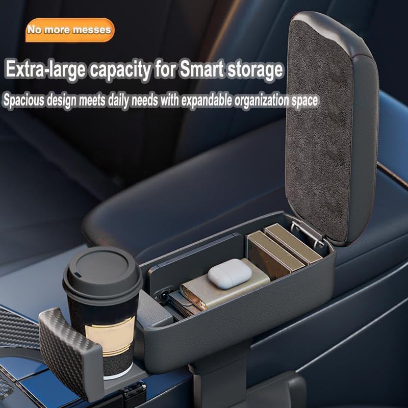 【تخزين واسع للأساسيات المنظمة】مساحة التخزين الواسعة لمنظم مسند الذراع المركزي القابل للرفع في السيارة تسمح لك بتوديع الأجزاء الداخلية للسيارة المزدحمة. بدءًا من ضرورياتك اليومية مثل الهواتف المحمولة والمفاتيح والنظارات الشمسية والتغييرات وحتى العناصر الكبيرة مثل المحافظ، كل شيء له موقعه المخصص وفي متناول اليد. يضمن التصميم الداخلي المنظم إمكانية تحديد موقع العناصر الخاصة بك والوصول إليها بسرعة دون تشتيت انتباهك، مما يسمح لك بالتركيز على الطريق للأمام