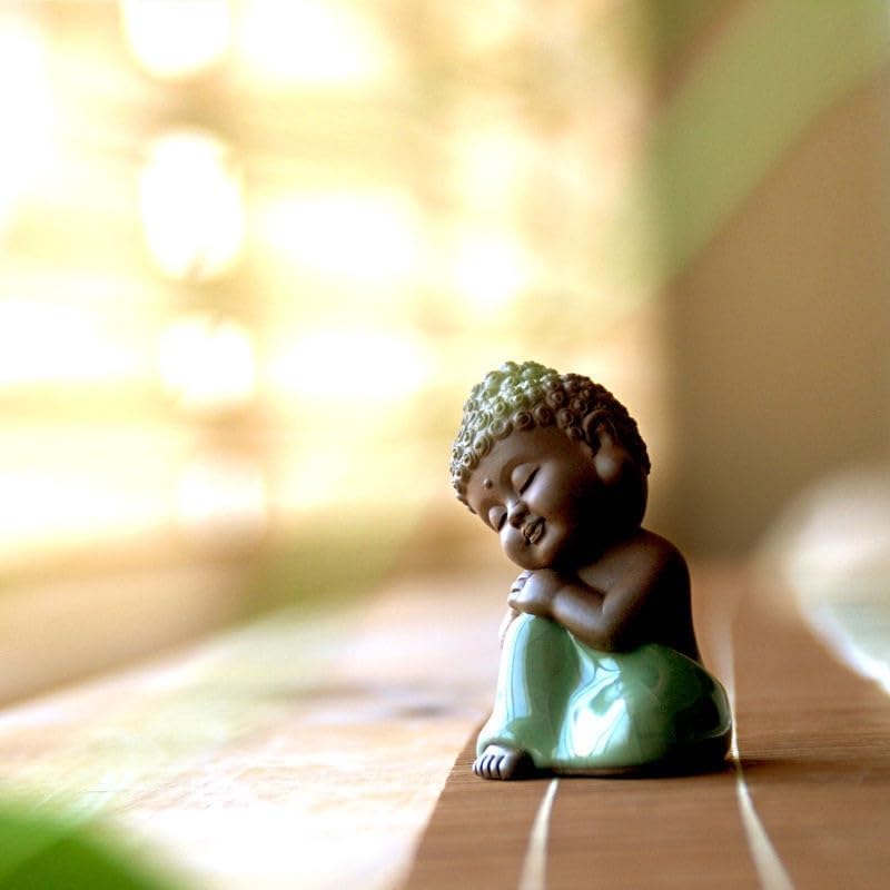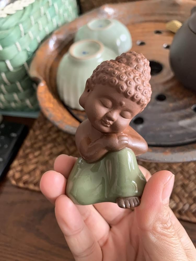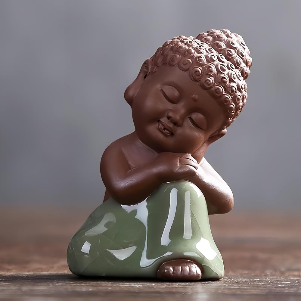 تمثال بوذا الطفل اللطيف من السيراميك، تمثال بوذا رولاي السلمي من الطين الأرجواني، تمثال بوذا الطفل السعيد، تمثال الراهب، تمثال صغير لسطح المكتب، زخارف الشاي، ديكور منزل الراهب (6)