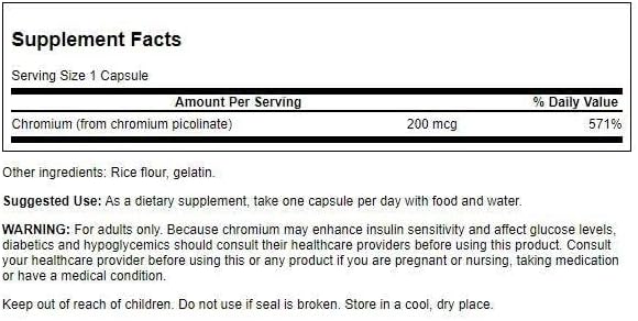 HEALTH AND WELLNESS: Swanson's Chromium Picolinate capsules contain a natural mineral supplement formulated for health and wellness support and levels already within the normal range.