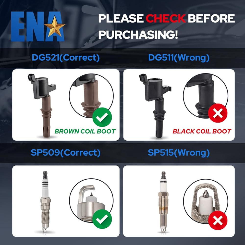 مجموعة ENA مكونة من 8 ملفات إشعال DG521 Platinum Spark Plug SP509 متوافقة مع Ford Mustang Expedition Explorer F150 Super Duty F250 F350 F450 F550 F650 F750 F53 F59 4.6L 5.4L 6.8L 8L 3Z12029A