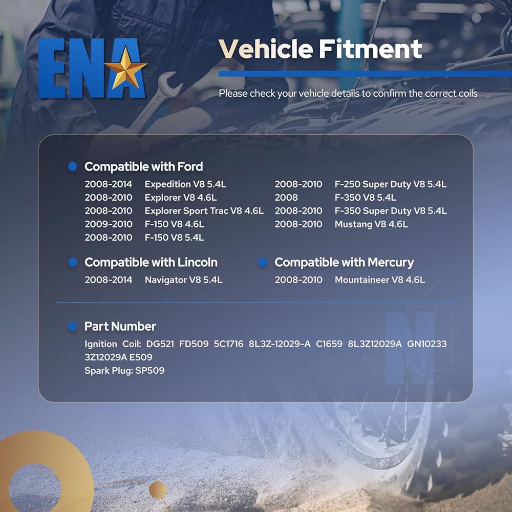 متوافق مع موستانج 2008-2010 4.6L؛ متوافق مع لينكولن 2007-2008 مارك LT 5.4L؛ متوافق مع لينكولن 2007-2014 نافيجيتور 5.4 لتر؛ متوافق مع ميركوري 2008-2010 ماونتينير 4.6L