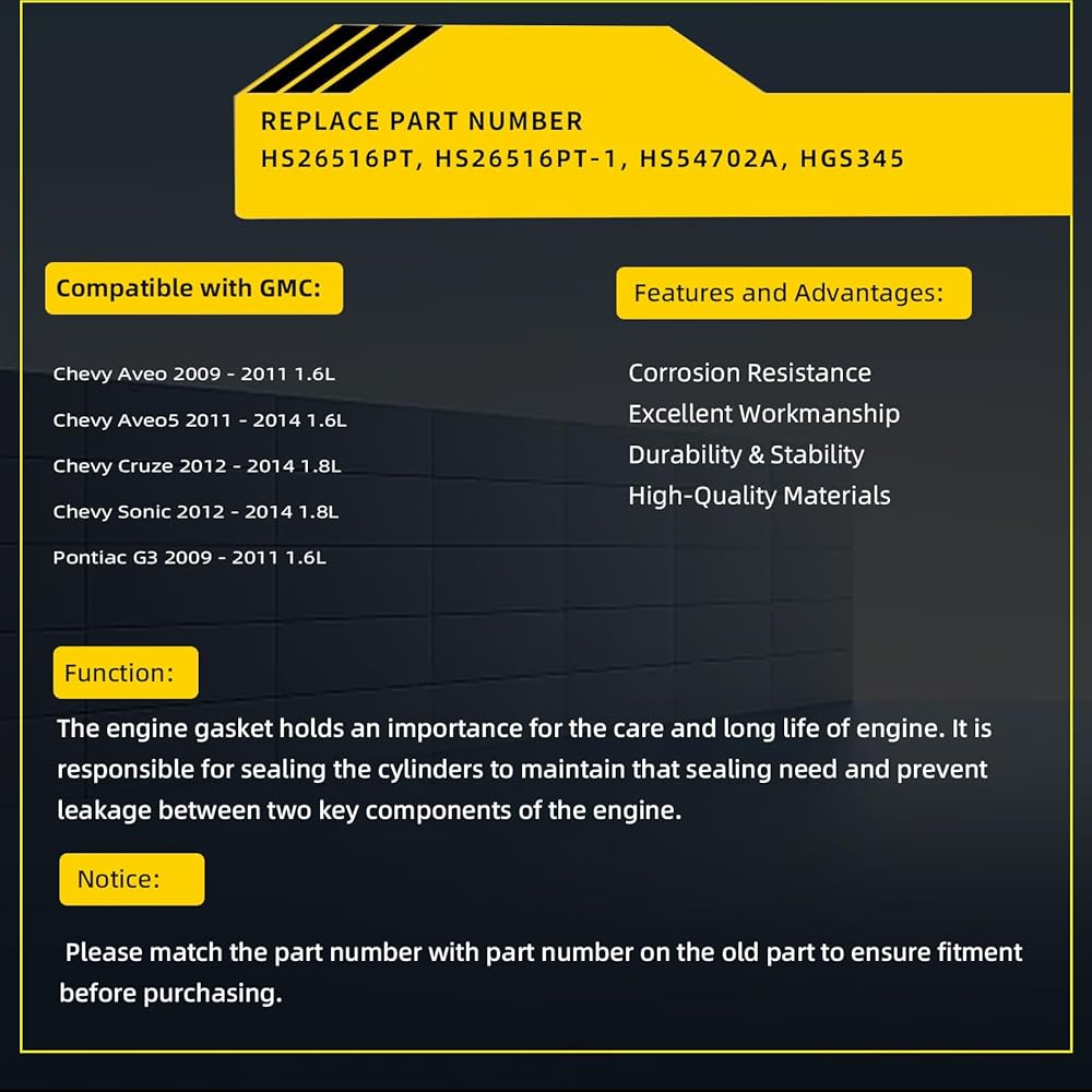 HS26516PT HS54702A HS26516PT-1 مجموعة حشيات رأس المحرك يناسب تشيفي أفيو Aveo5 كروز سونيك/لبونتياك G3 2009 2011 2012 2013 2014 1.6L 1.8L