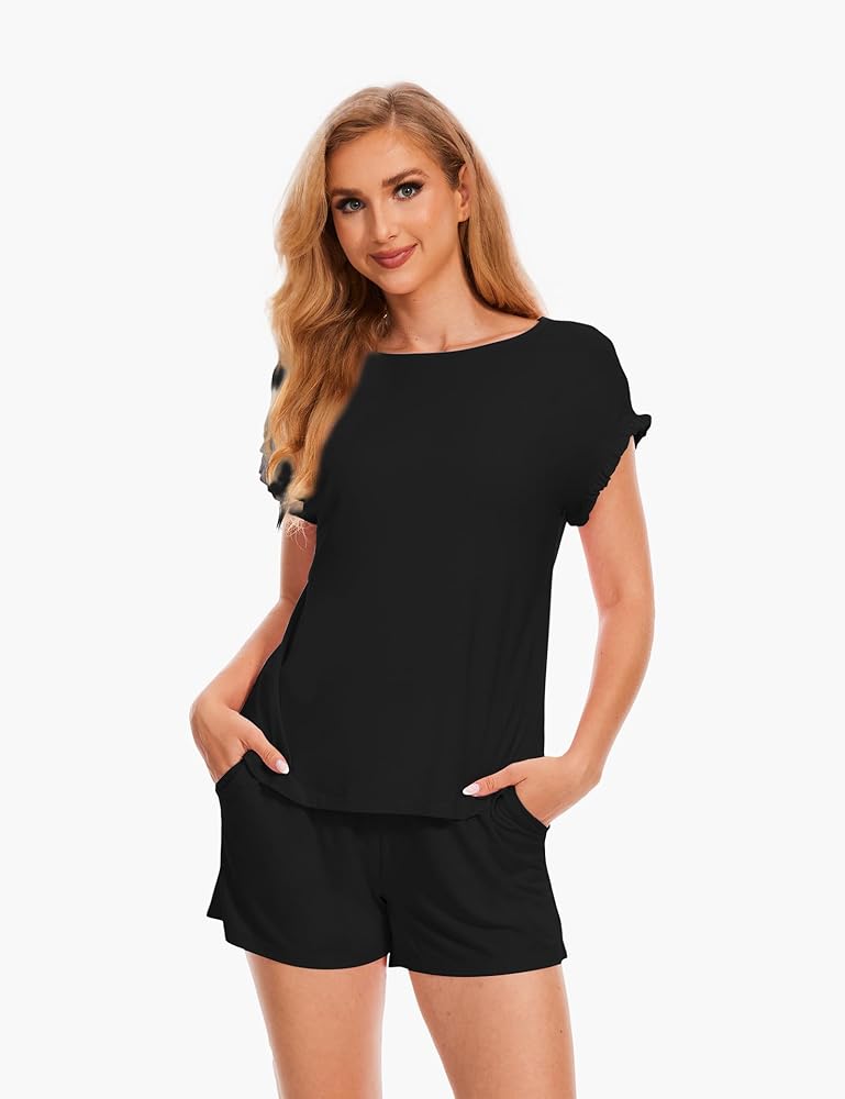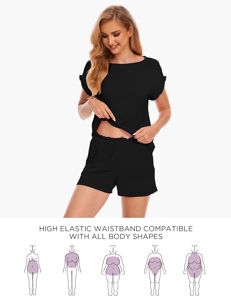 المادة - لقد استخدمنا نسيجًا ناعمًا فاخرًا خفيف الوزن وجيد التهوية. مع الكمية المناسبة من التمدد، توفر لك مجموعات البيجامات النسائية ذات الأكمام القصيرة الراحة القصوى