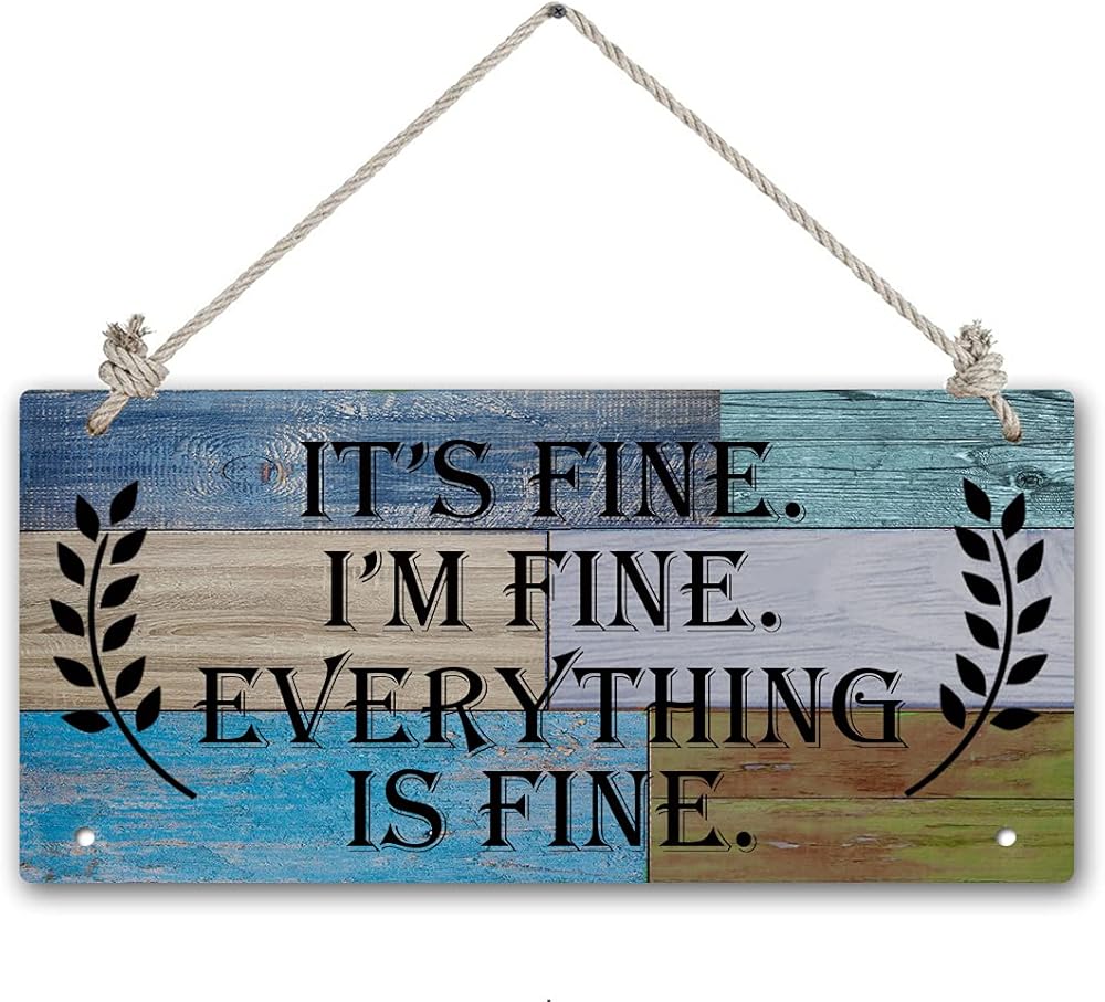 علامة خشبية على ما يرام، أنا بخير، كل شيء على ما يرام، مقاس 12 × 6 بوصة، ديكور جدران، ديكور منزلي، لوحة خشبية، علامة معلقة