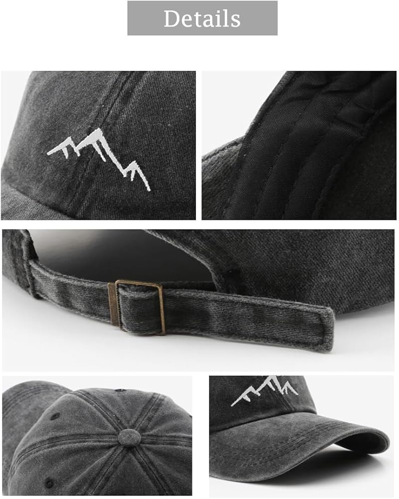 LONGTEN Vintage Baseball Cap Mens Peak Embroidery Baseball Hats Washed Cotton Dad Cap Mountain Retro Womens Outdoor Sports Cap Adjustable