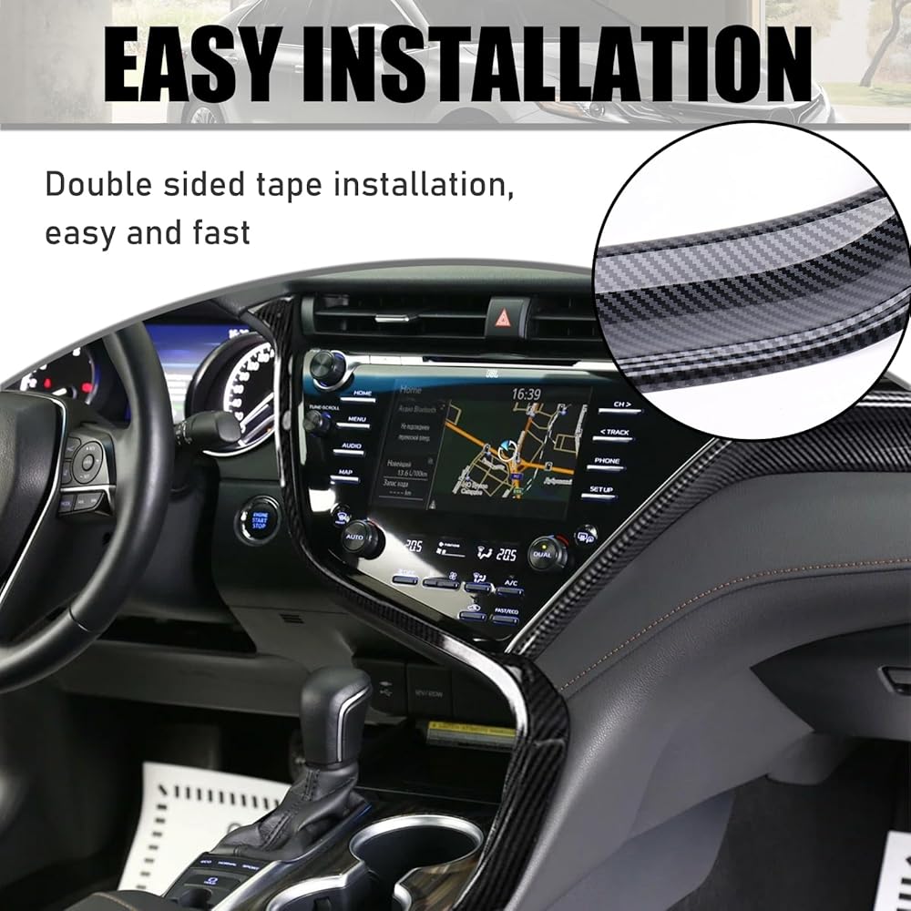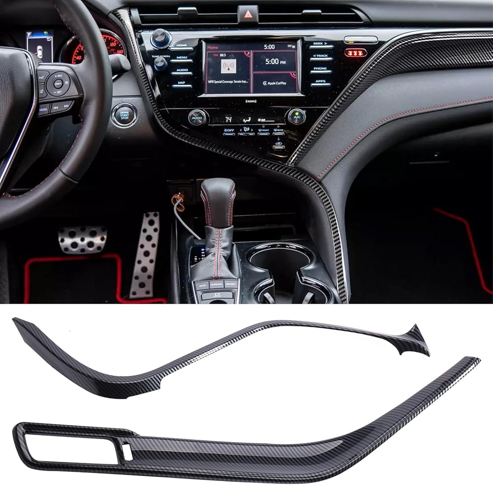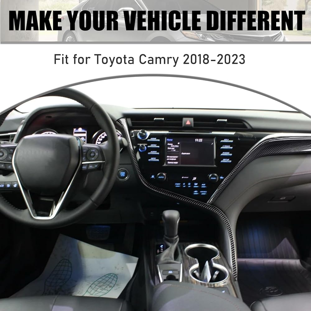 GearUp الجبهة وحدة التحكم المركزية شرائط غطاء صب الكسوة لتويوتا كامري 2018 2019 2020 2021 2022 2023 ألياف الكربون الطباعة لوحة القيادة لوحة التحكم المركزية غطاء