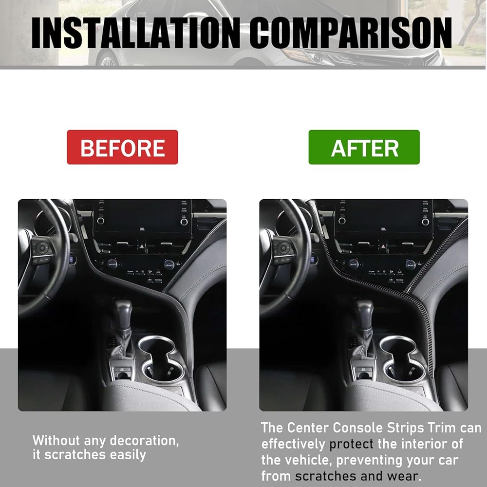 【Easy Installation】:The back of the center console trim for Ford Toyota Camry has double-sided tape, and cleaning the surface of the interior before installation and heating the tape can help get better adhesion.