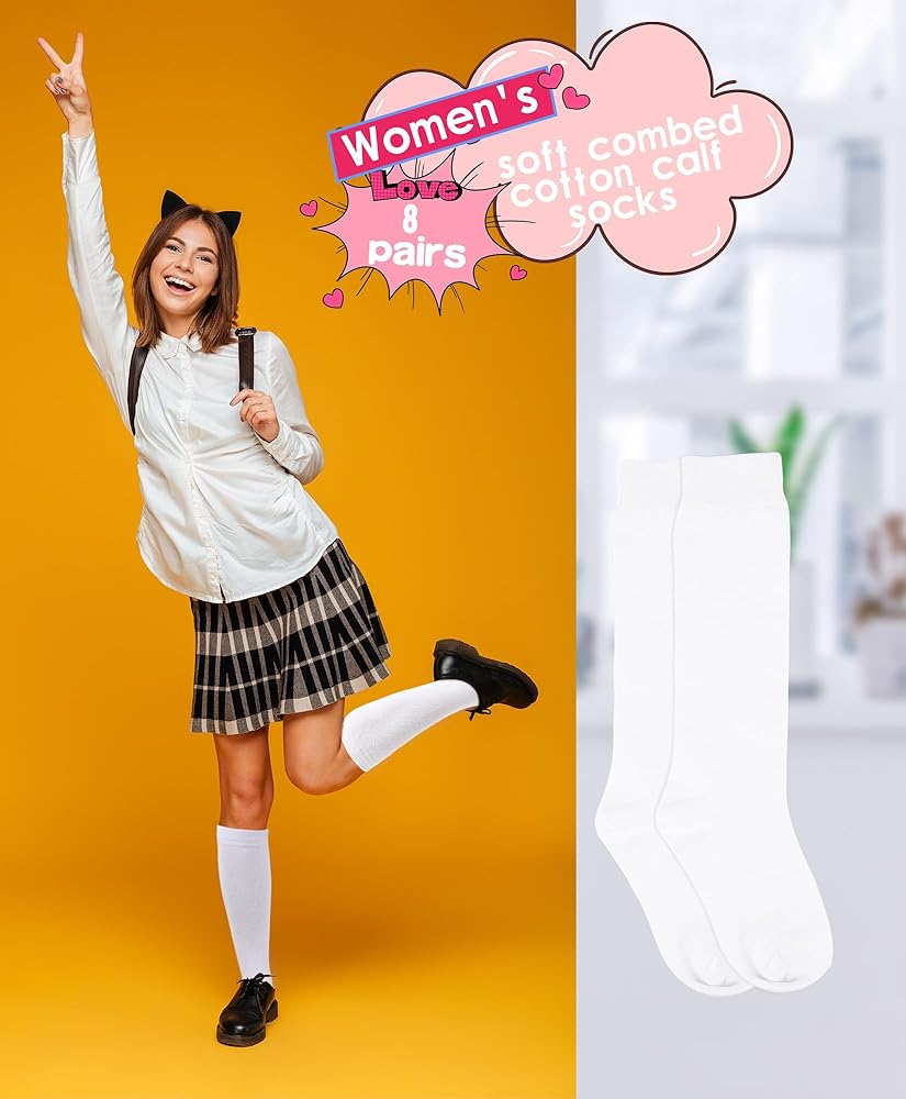 【Excellent Design】: half calf socks are more fashionable when paired with mini skirt and shorts, the high-quality cotton material is elastic, providing extra comfort for the foot, suitable for different ages, allowing more freedom of movement